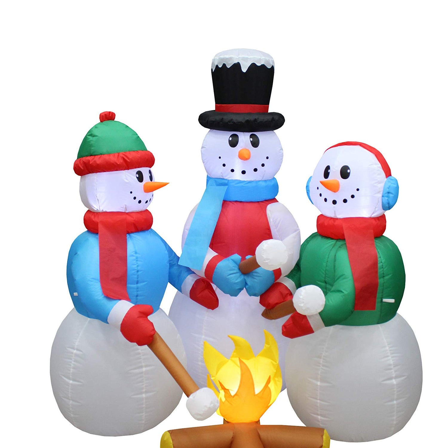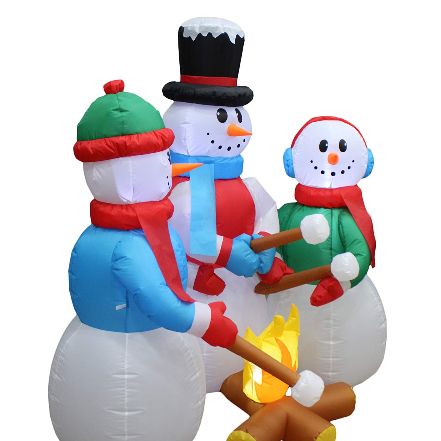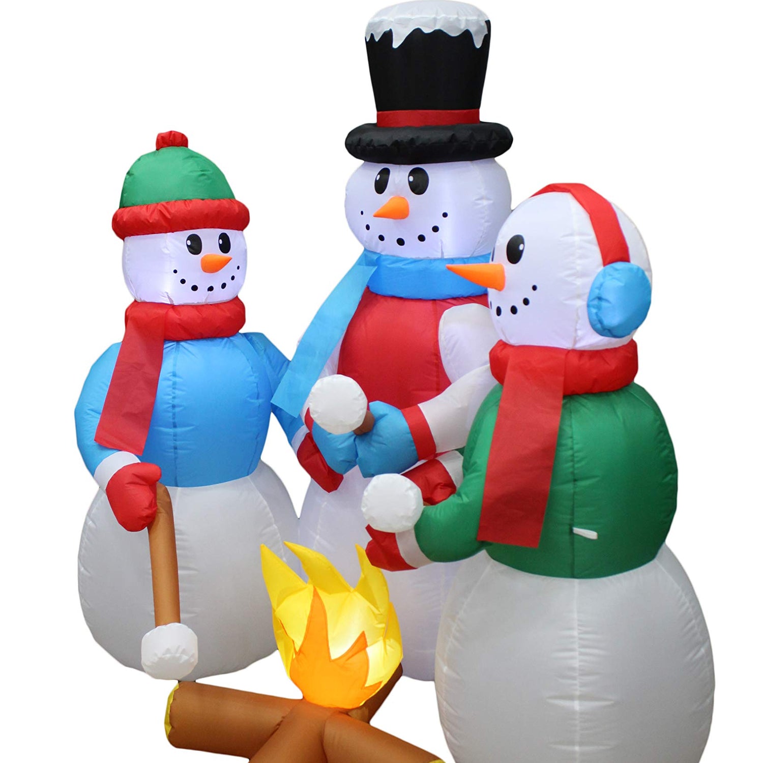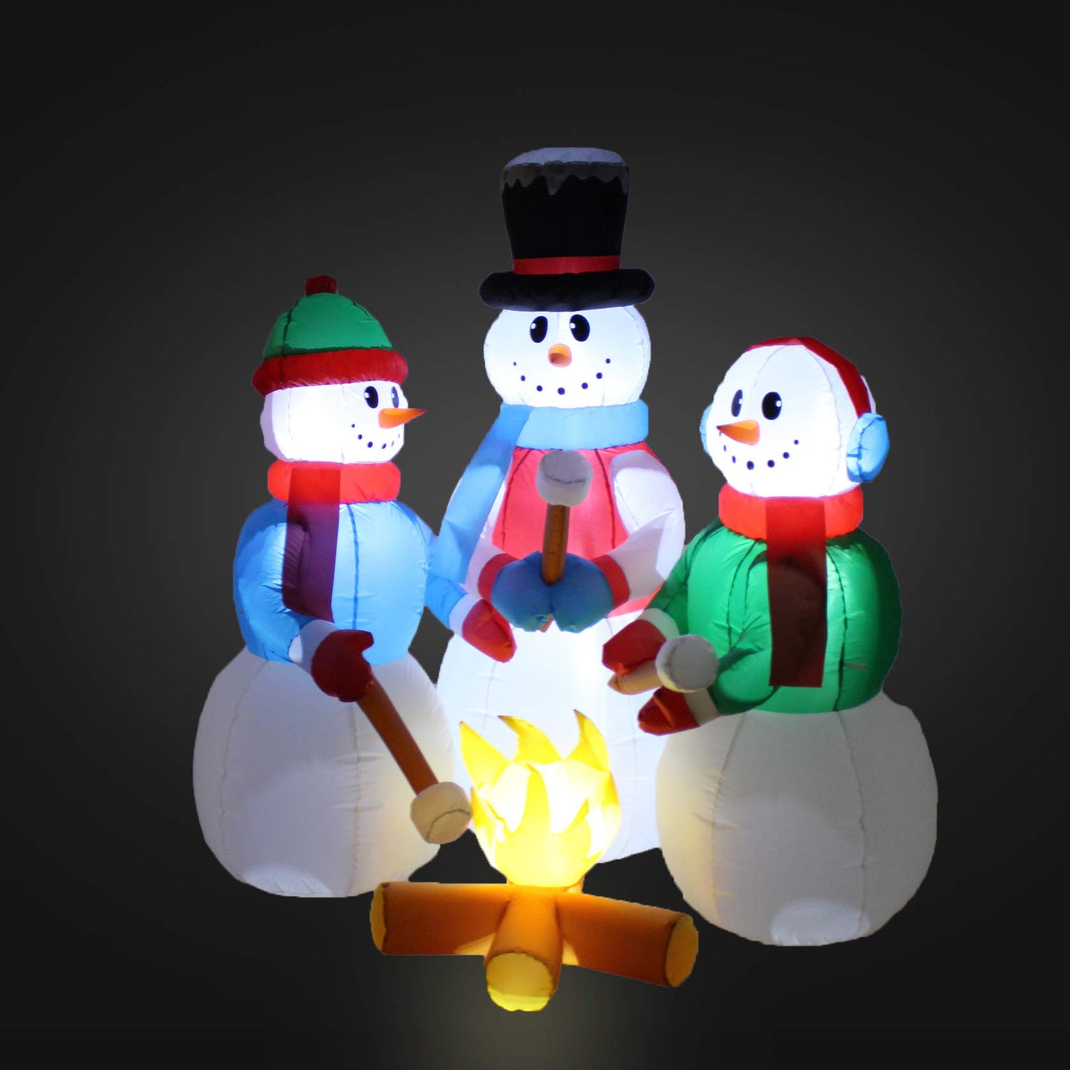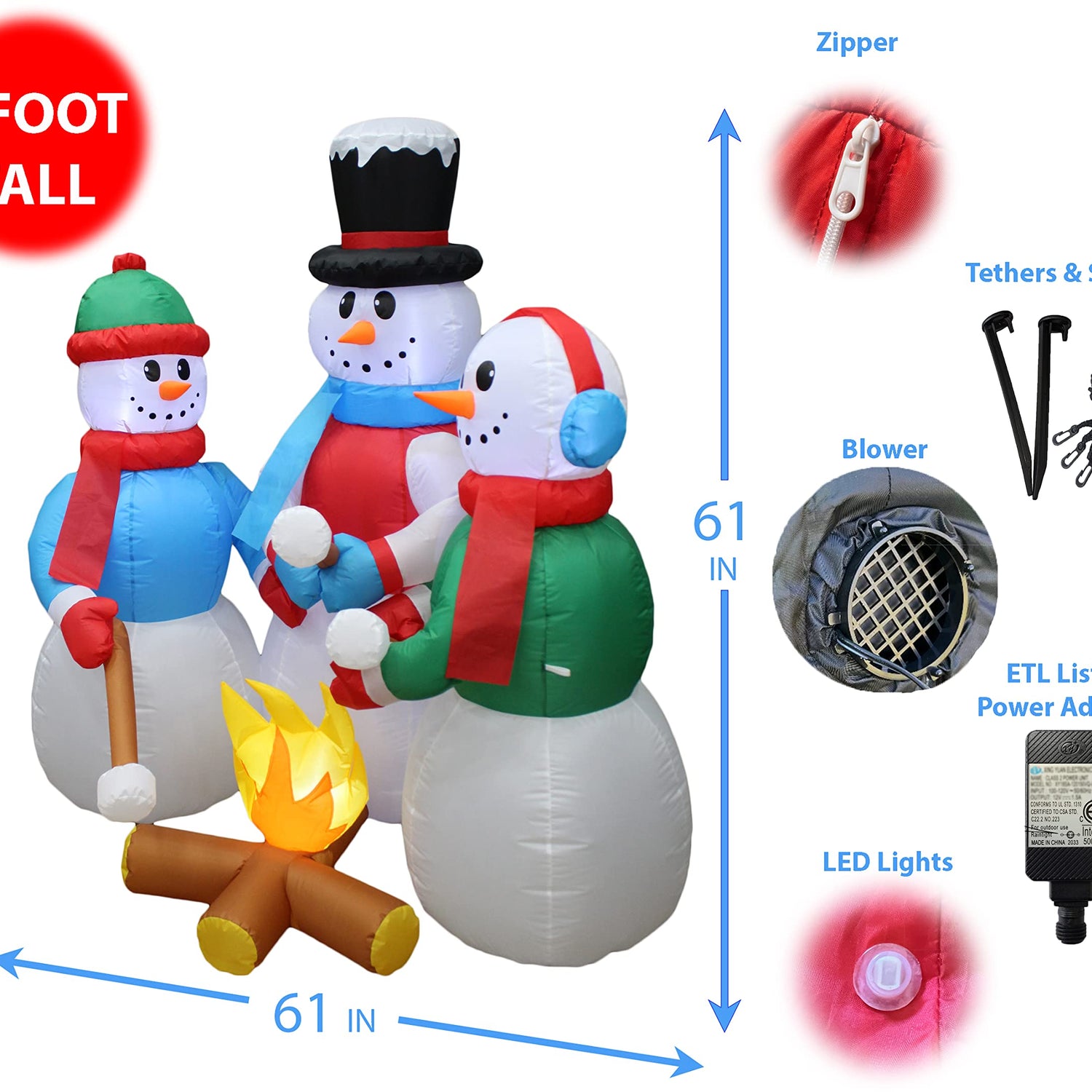 5 Foot Tall Huge Christmas Inflatable Snowmen Snowman Campfire Camping Roasting Marshmallows LED Lights Outdoor Indoor Holiday Decorations Blow up Lawn Inflatables Home Family Decor Yard Decoration