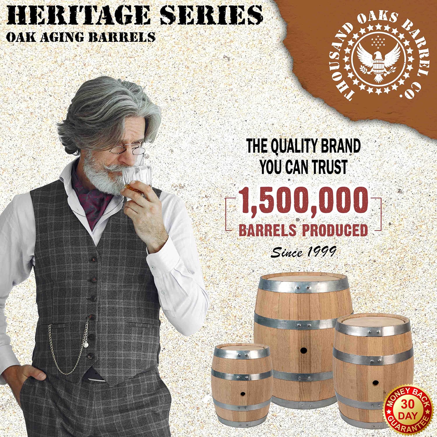 5 Gallon Oak Barrel - Wooden Whiskey Barrel Wine Barrel (20 Liter) - for The Home Brewer, Distiller, Wine Maker - New American 20L Oak Barrels for Aging Whiskey, Bourbon, Mead (HERITAGE SERIES)