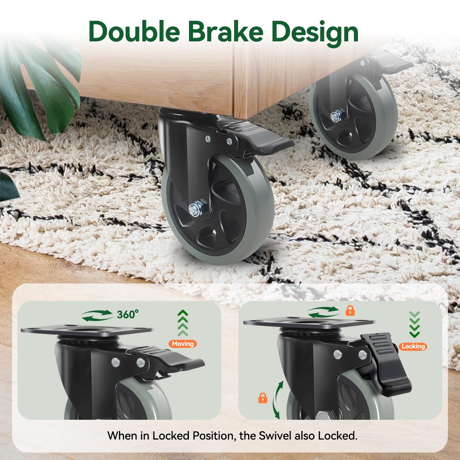 - FLEXIBILITY & SAFETY: Swivel casters are 360-degree rotating, which are much easier to turn corners, move furniture or workbench sideways. Also, each wheel has a separate brake, ensuring you can easily lock the casters and direction to prevent the device from moving and bumping others.