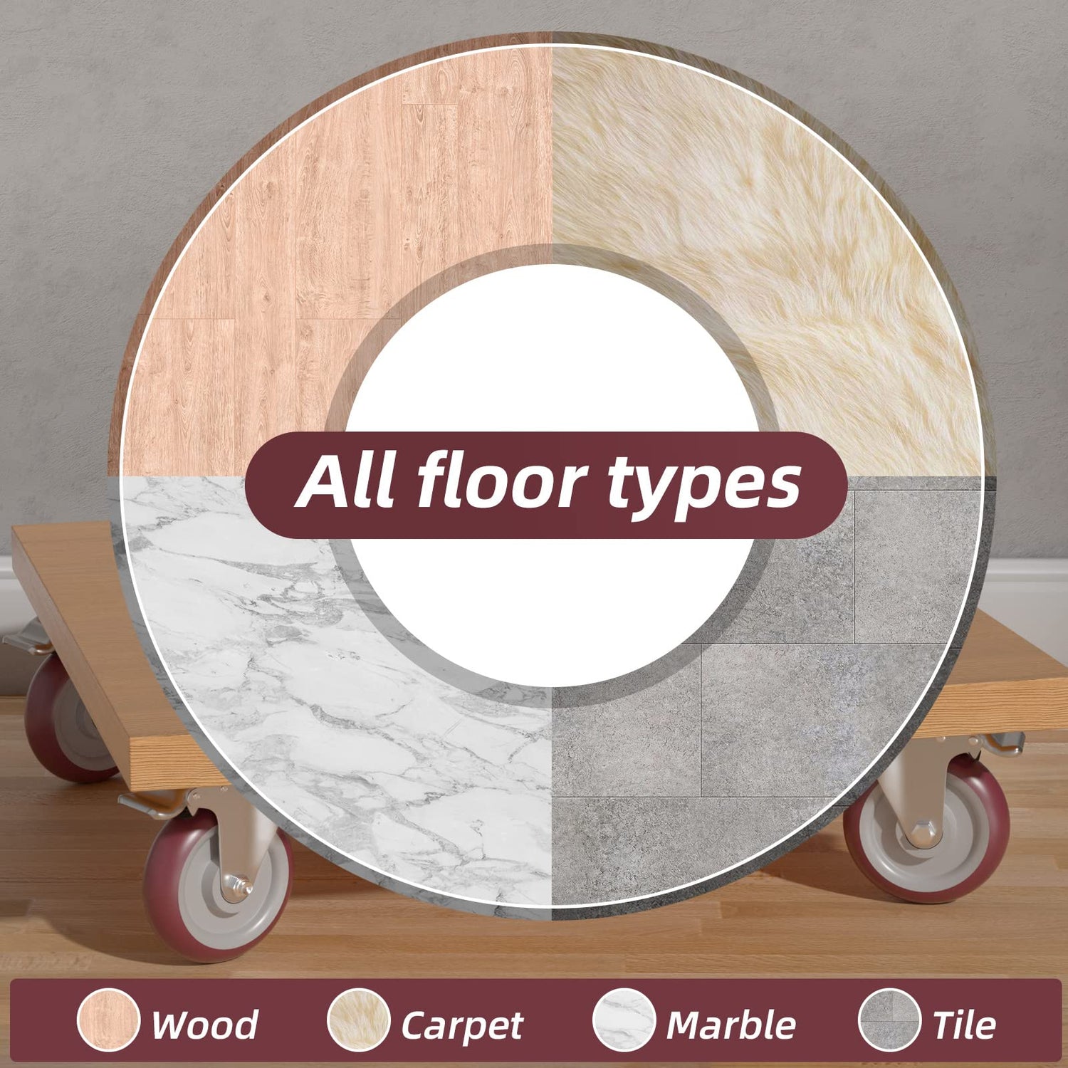 - Floor Protection - Polyurethane rubber wheels leaves no traces, absorbs vibrations and shocks, and keeps the movement quiet and scratch-free. Our Premium castor wheels will protect your flooring from damage and reduce your long-term facility maintenance expenses