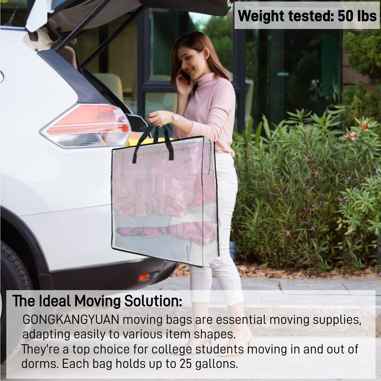 - STORAGE BIN & MOVING BOX ALTERNATIVE: Clear storage bags with zipper serve as a lightweight, economical, and convenient alternative to traditional moving boxes, packing boxes, or other moving supplies. simply unfold, unzip, and start packing or loading. Our reusable heavy duty storage bags can be folded into a compact size,saving space and allowing convenient storage in your room, drawers, cabinets, closets, garage, luggage, or car trunk. Easy to clean with wipes.