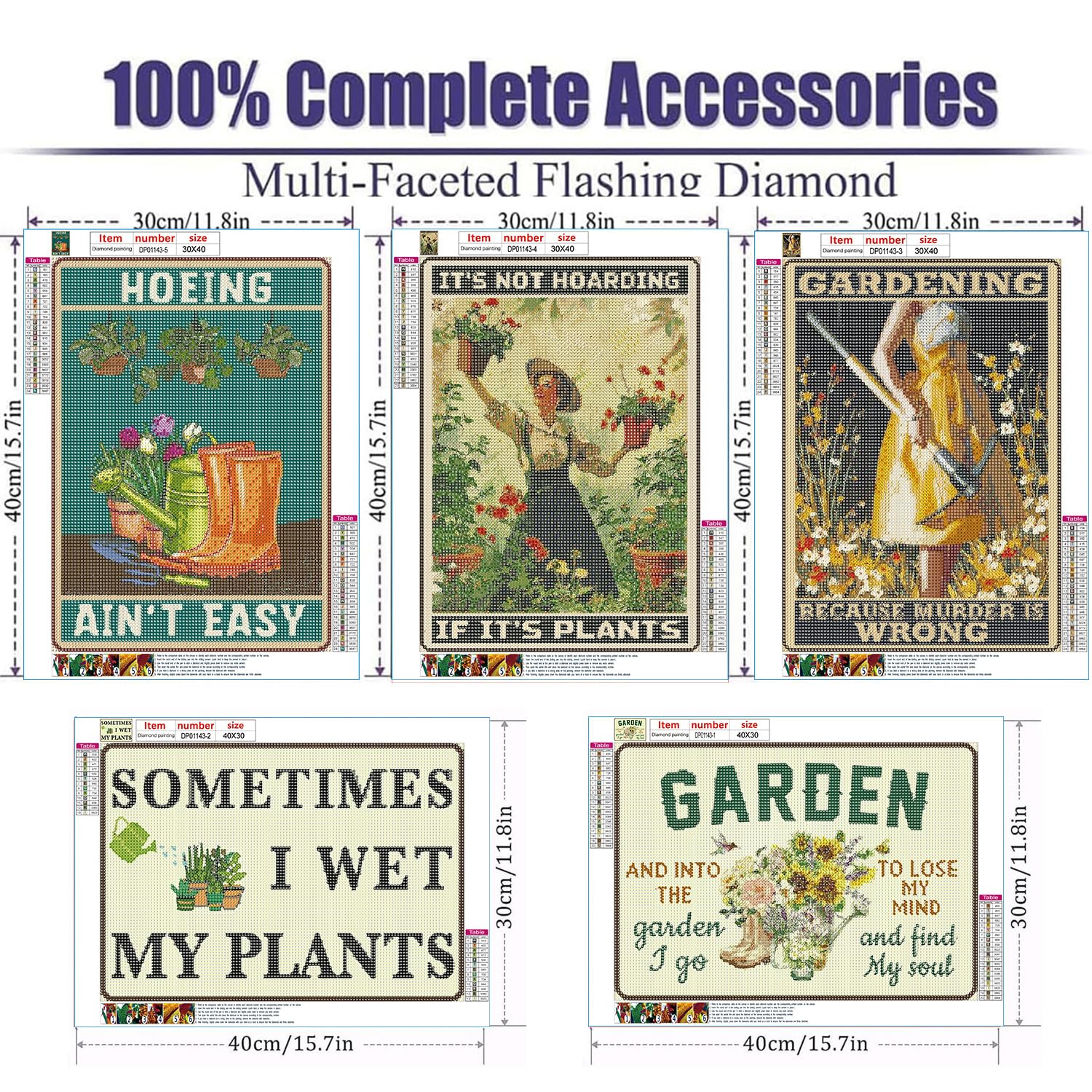 5 Pack of Diamond Art Kits for Adults,Funny Garden sign Diamond Painting kit Diamond Art Paintings Kit for Beginner Diamond Painting Kits for adults DIY Gem Art and Crafts for Home Wall Decor 12x16 in