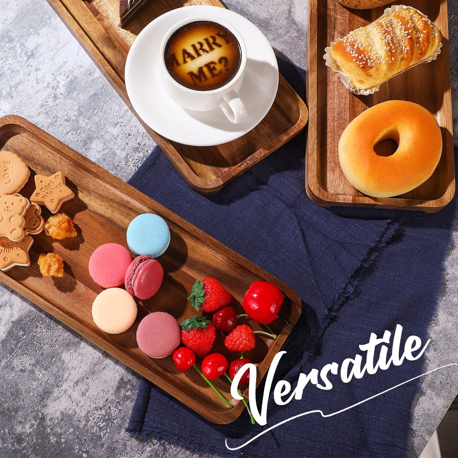 5 Pack Solid Acacia Wood Serving Trays, Rectangular Wooden Serving Board for Food Appetizer Serving Tray Plates for Vegetables Fruit Charcuterie Cheese Platters Home Kitchen Decor (16 x 6.5 Inch)