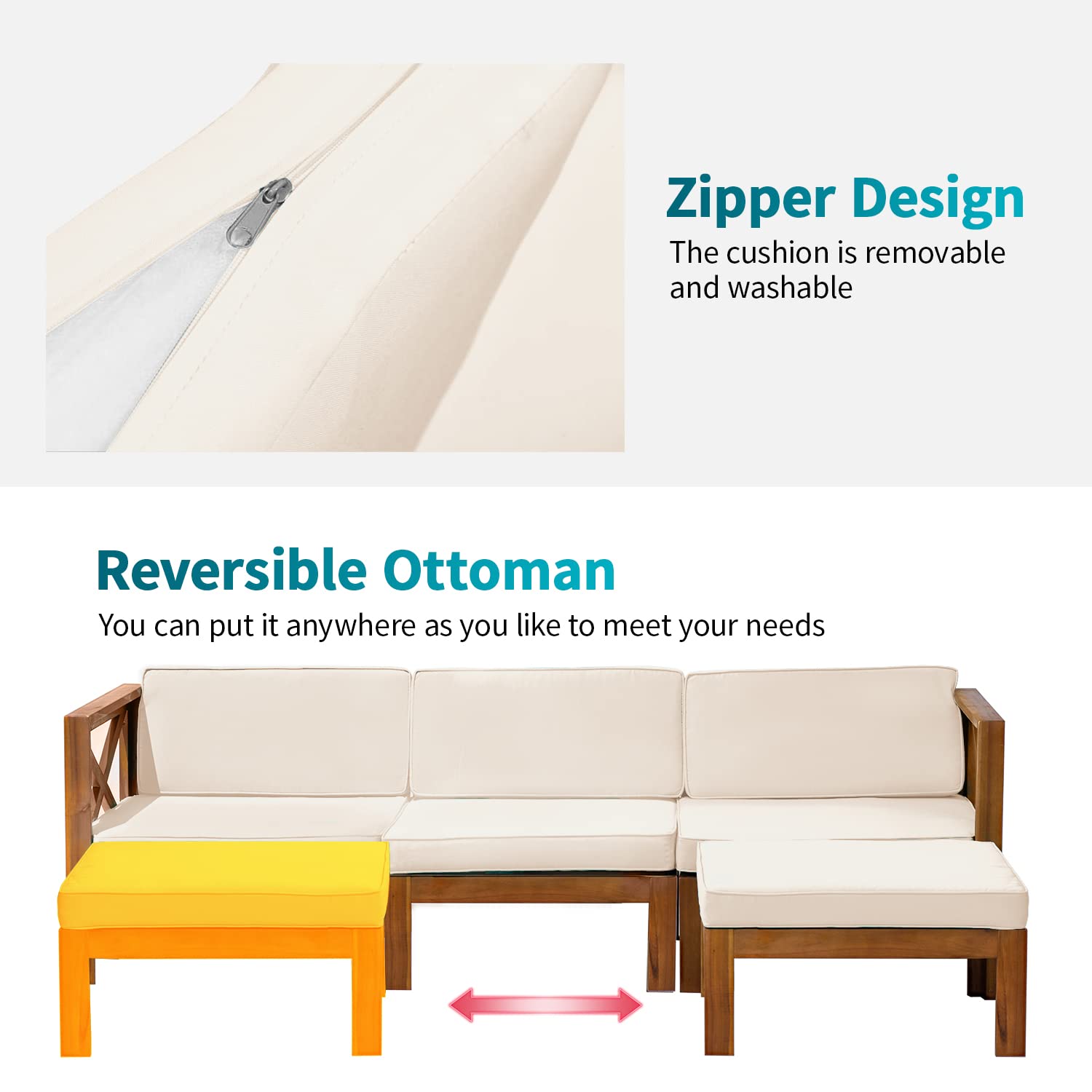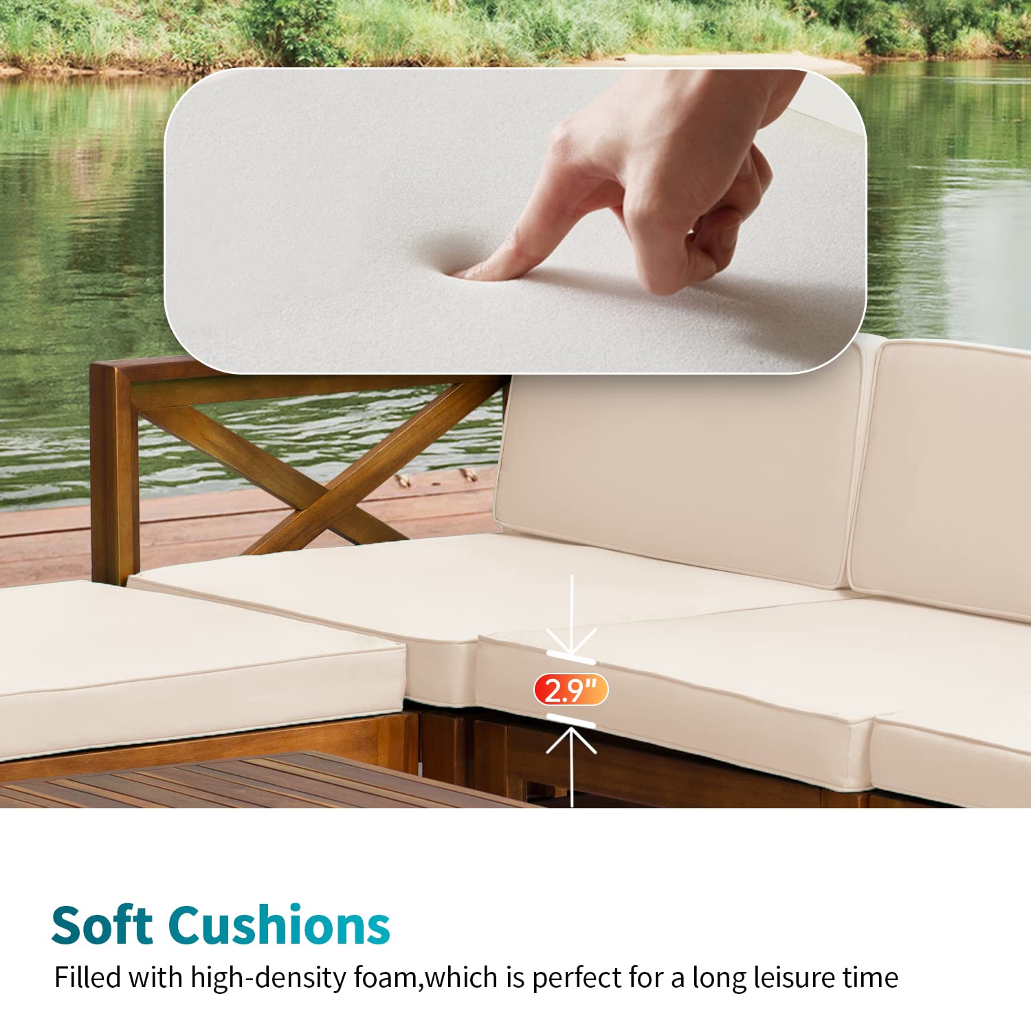 5-Piece Acacia Wood Outdoor Sofa Set Patio Bistro Set Furniture Outdoor Chat Conversation Table Chair Set with Water Resistant Cushions and Coffee Table for Beach Backyard Garden
