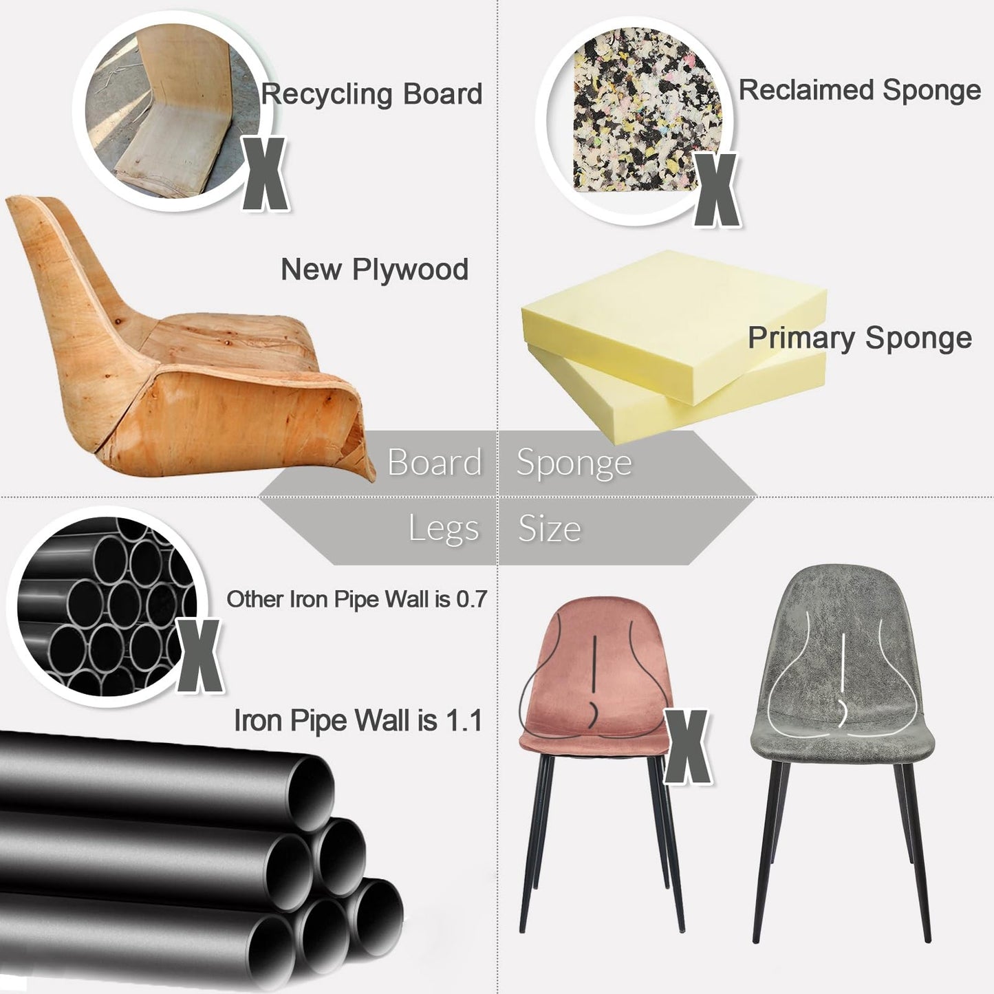 - 【High Quality 5 Piece Dining Table Set】:Dining table set for 4 was designed to mix contemporary design with classic comfort while looking incredibly modern and stylish.Dining table is constructed with 1.5in thickened density board and Black painted metal legs, in rich grain finish for greater stability and sturdiness.Dining Chairs is made of high quality sponge material.thick foam-covered seat and a beautifully curved back to match your body for great comfort.even if you sit all day, you will not feel tired.Non-slip plastic pads on the bottom of the chair legs prevent scratching your beautiful carpet and flooring and ensure stability.