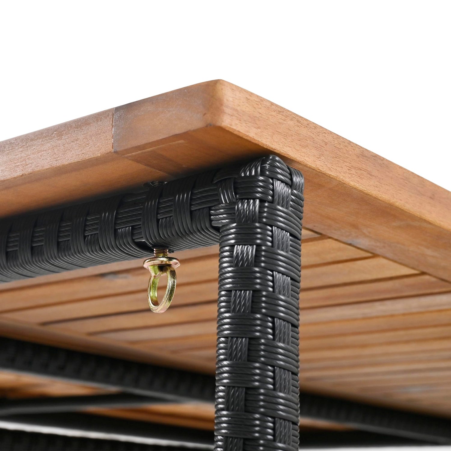 5-Piece VilroCaz Outdoor Acacia Wood & Wicker Counter Height Dining Set with Cushioned Stools