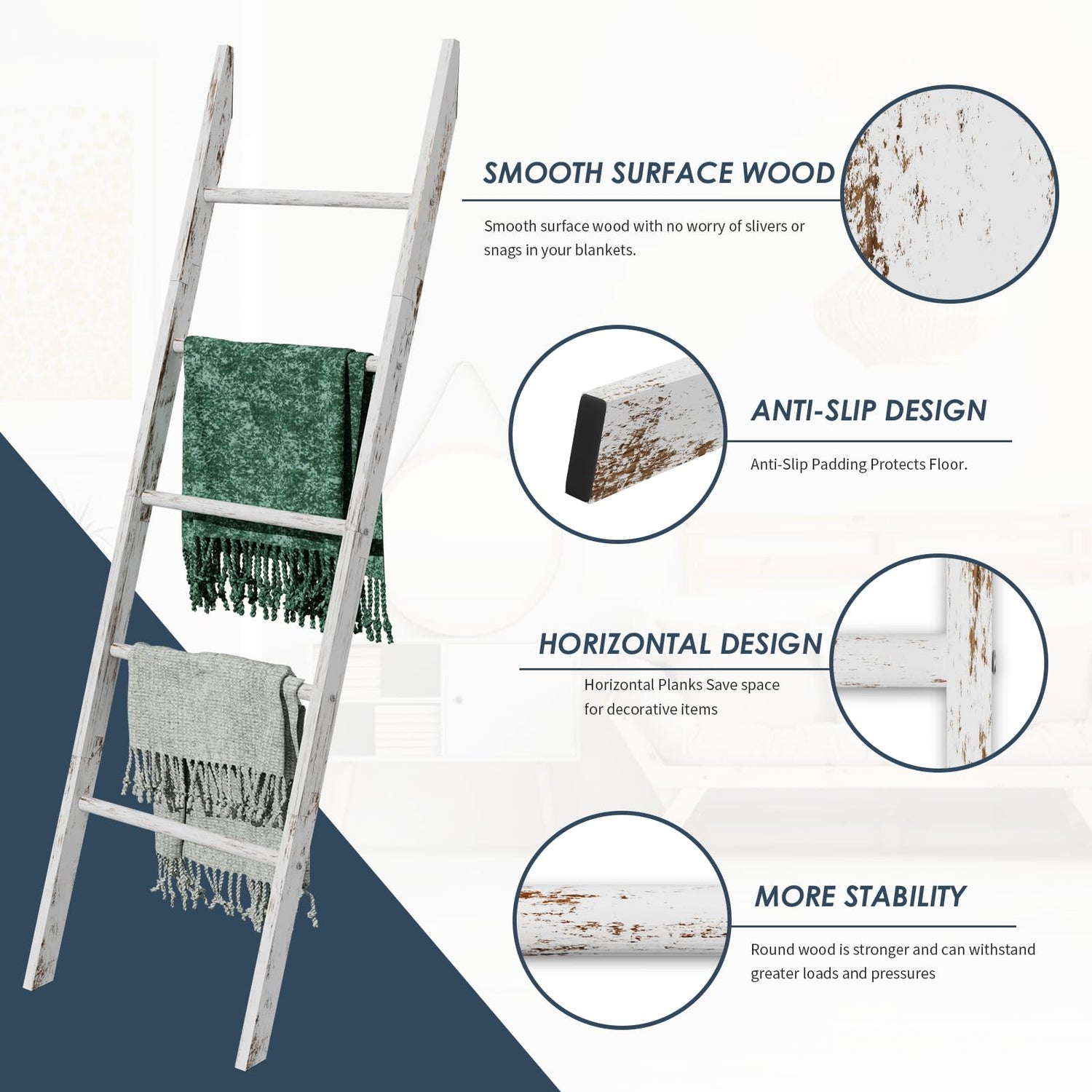 - GREAT GIFT IDEA: This ladder for blankets makes an ideal gift for special occasions such as weddings or housewarming parties, or as a thoughtful gift to yourself. This quilt ladder is also a great way to express your personal style and taste. The throw blanket ladder farmhouse require little maintenance, requiring only a simple wipe to keep them clean and dust-free.