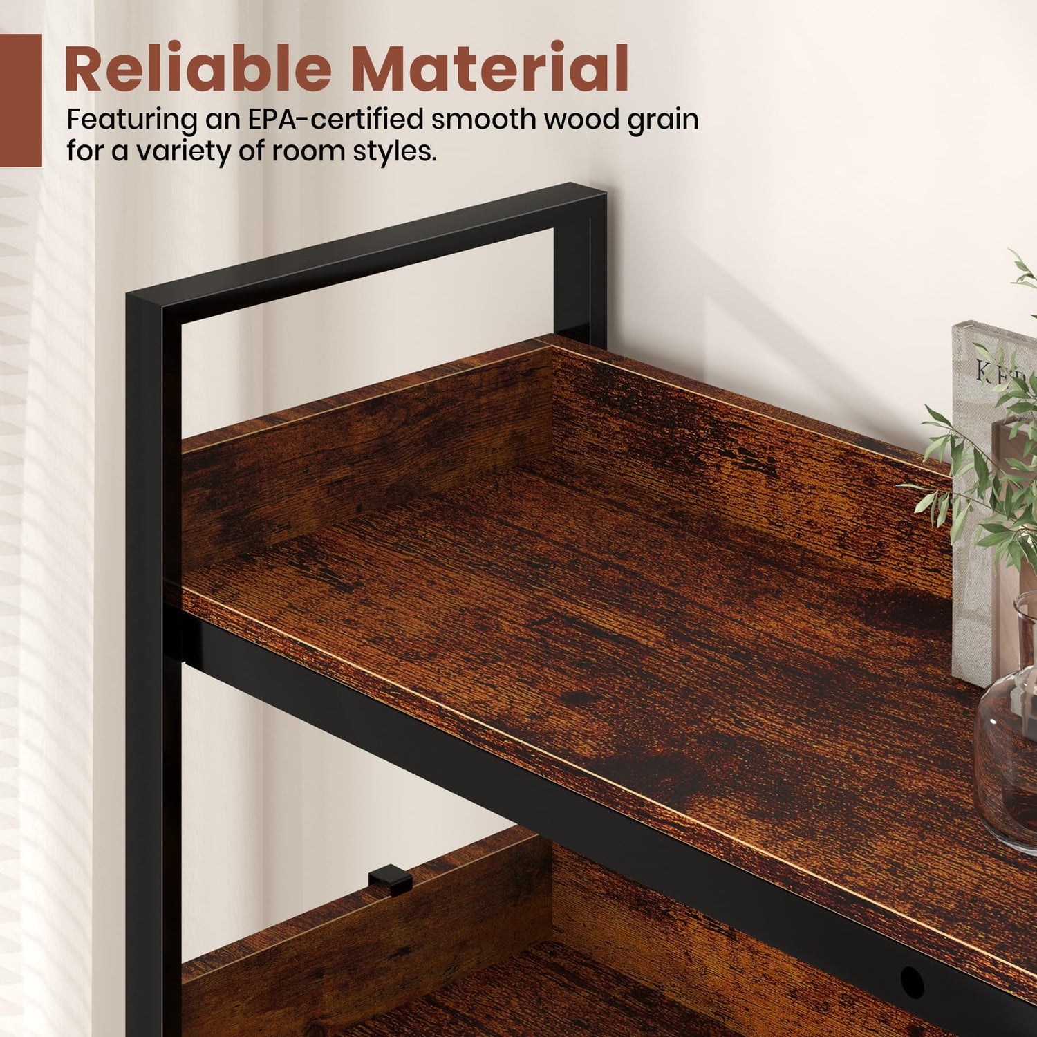 - [Durable Vintage Industrial Build]-- The corner shelf constructed with a sturdy metal frame and high - quality particle board, this L - shaped bookshelf guarantees long - term stability. It comes with an anti - toppling kit and adjustable feet that work together to keep the shelf steady, even on uneven surfaces. This corner book shelf not only ensures the safety of your family but also protects your floors from scratches and damage