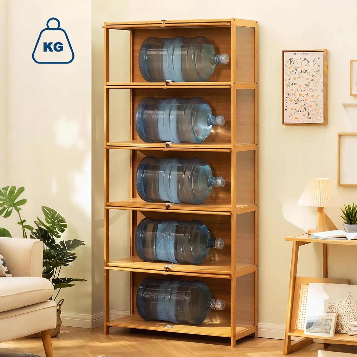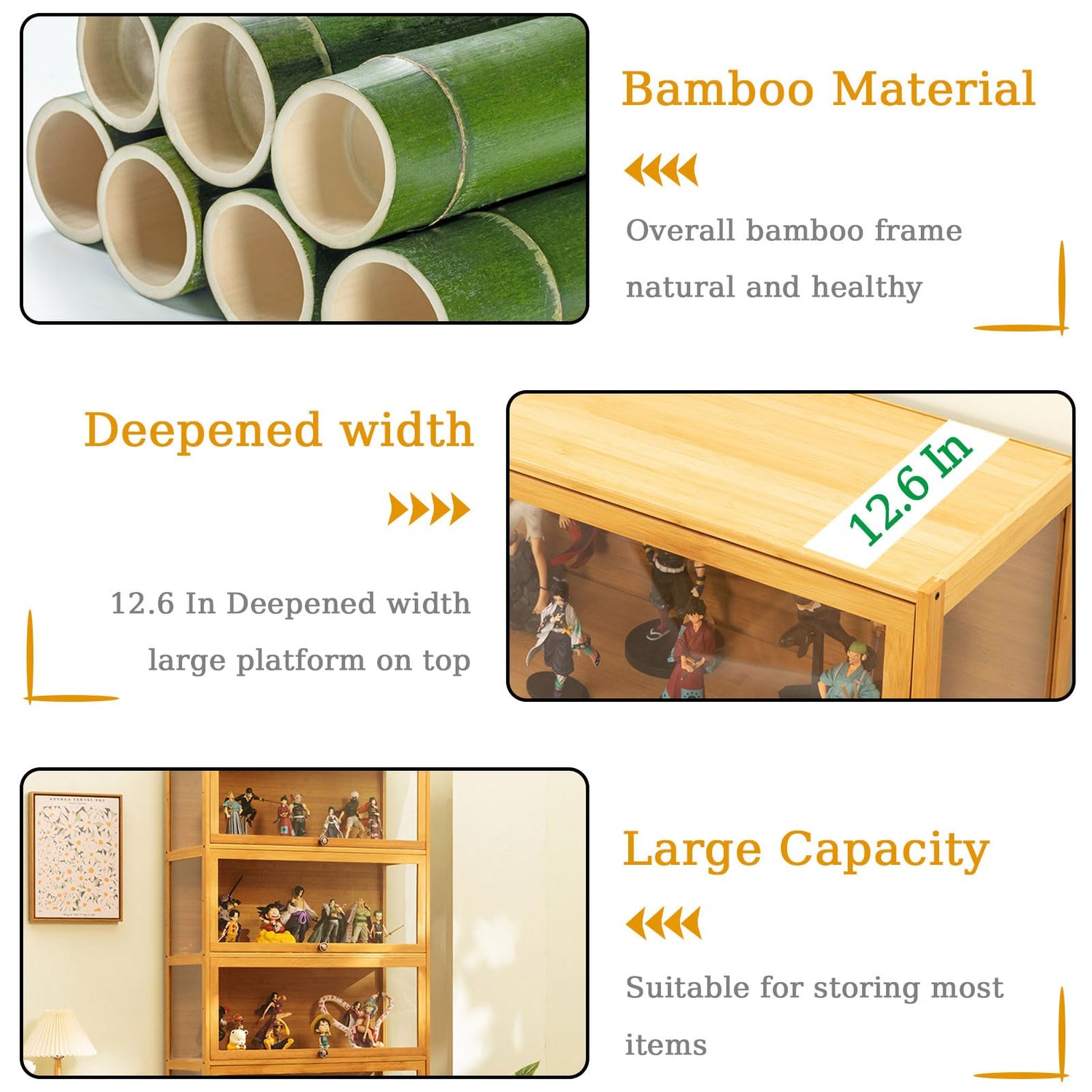 - 【High Quality Material】- The display cabinet is made of acrylic panel and solid bamboo boards, which ensure the stability of the display cabinet and provide long-time service. The bamboo material won't be affected by damp or rainy days.