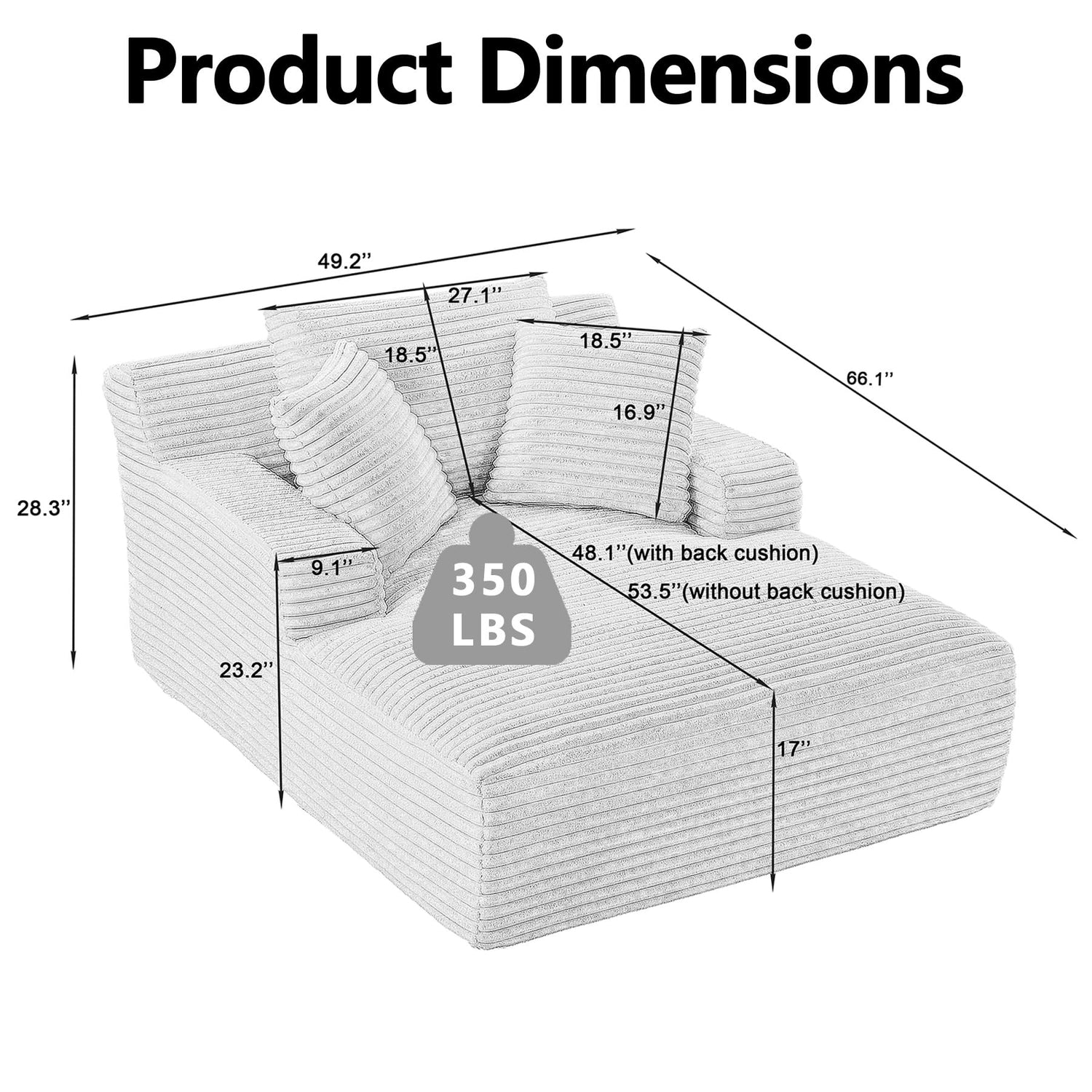 - No Assembly Required: Enjoy the convenience of a fully assembled chaise lounge upon arrival. With an overall dimension of 49.2" × 66.1" × 28.3", it saves you time and effort, allowing you to start using this oversized chaise lounge chair indoor right out of the box without any complicated setup procedures