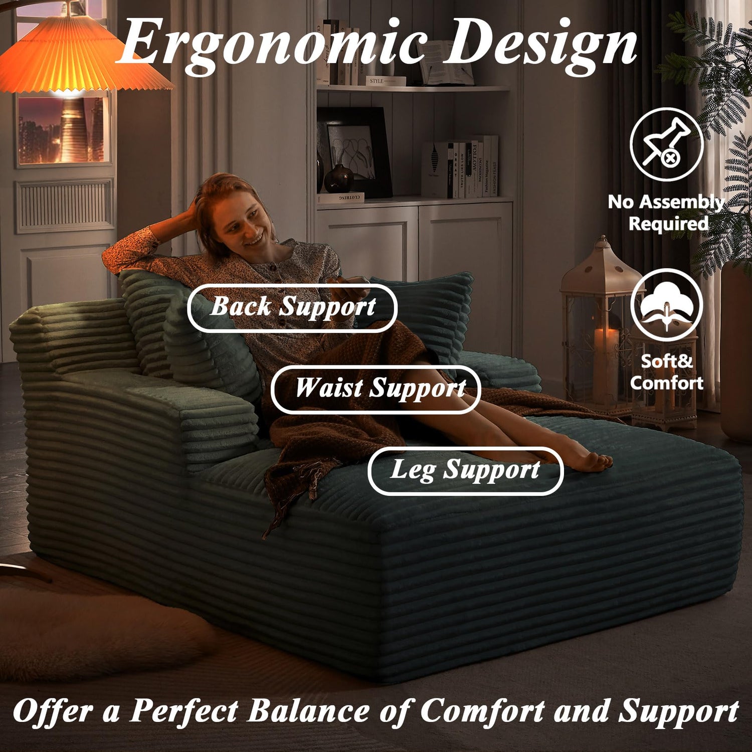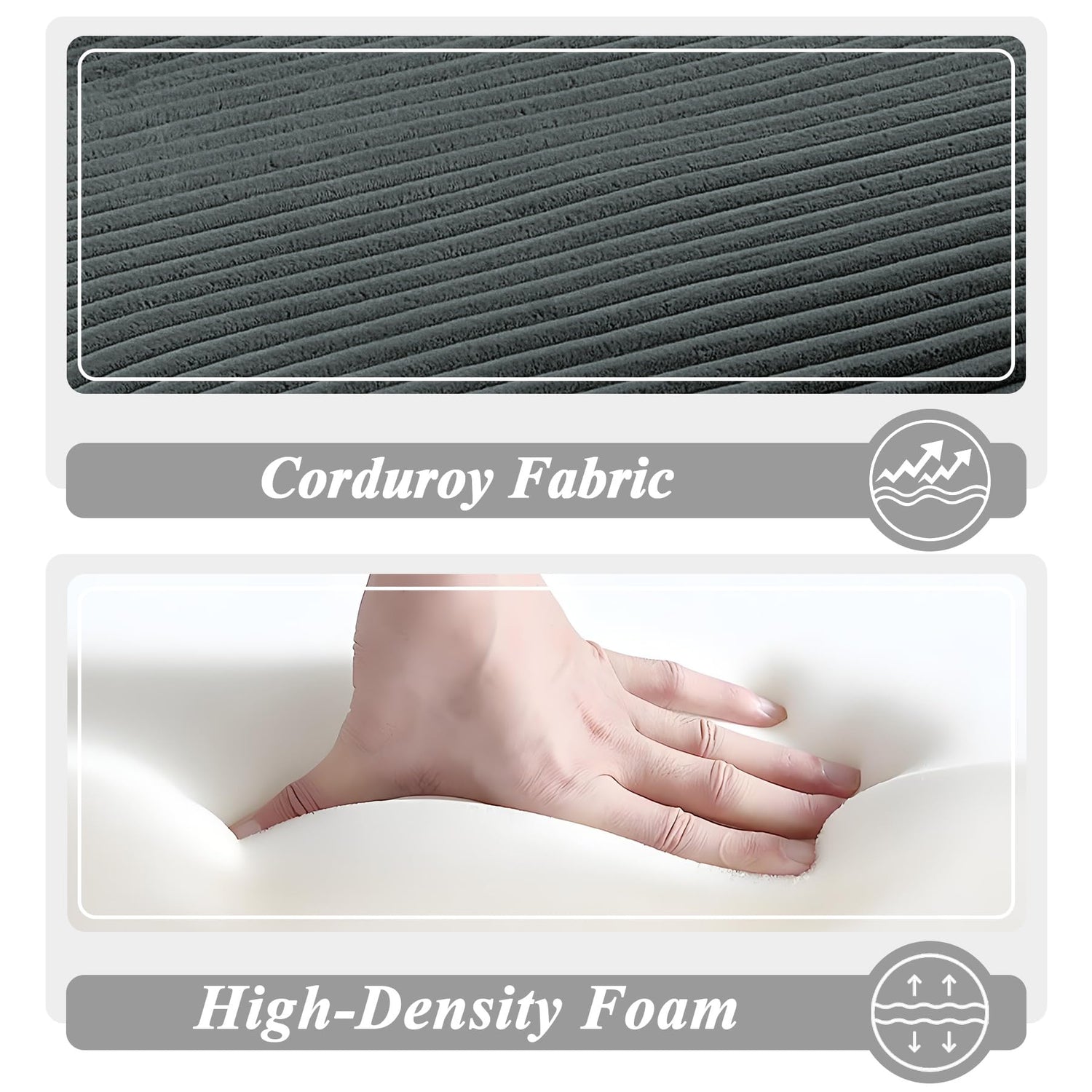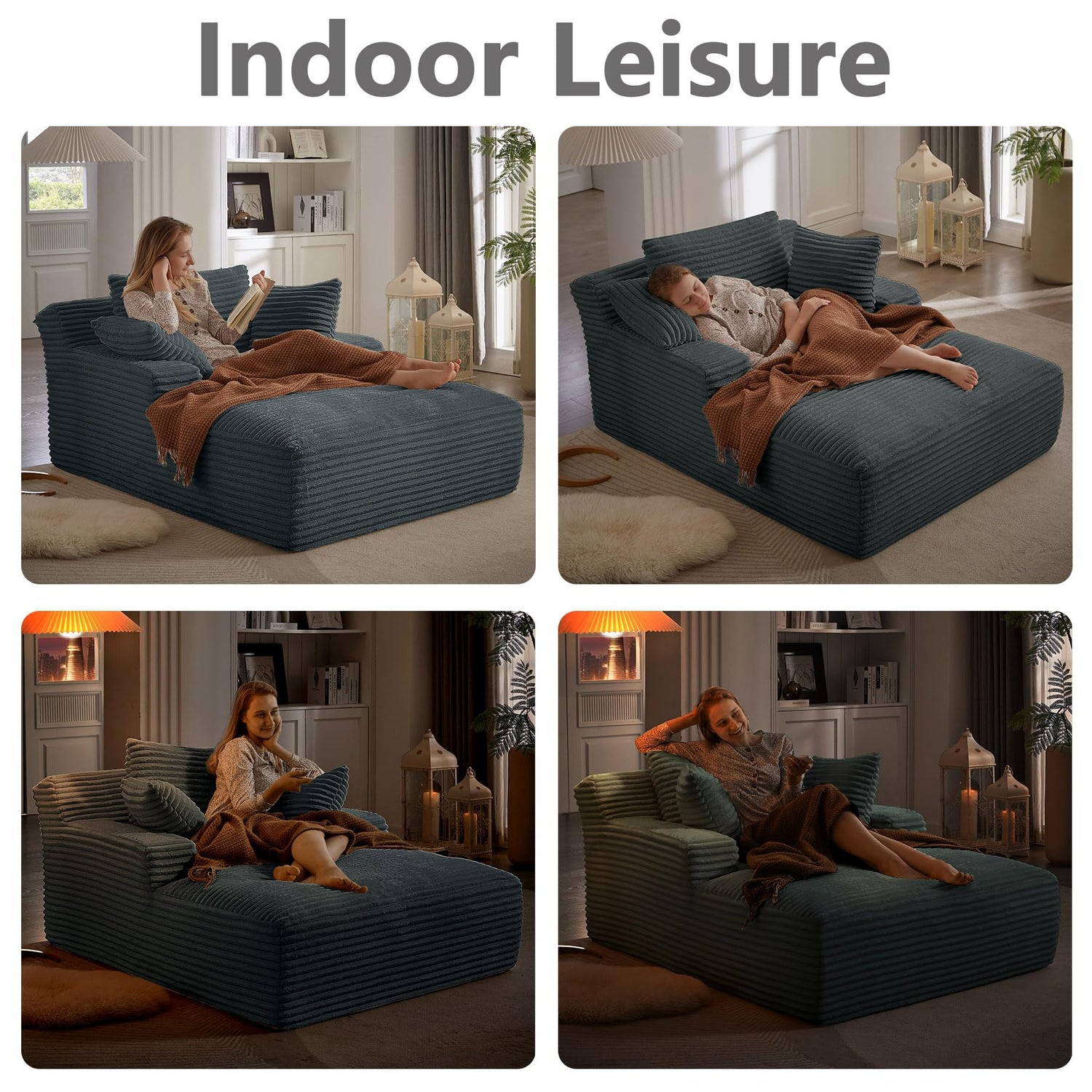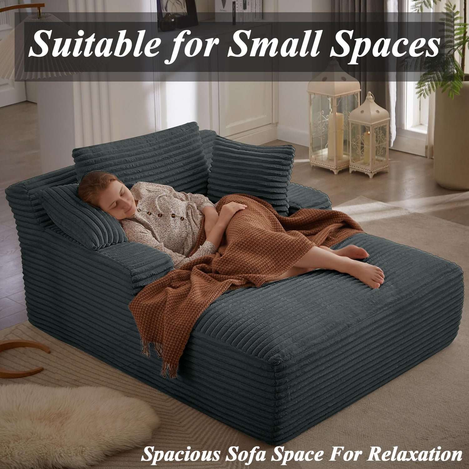 50" Boneless Couch, Oversized Chaise Lounge Sofa, Corduroy Chaise Lounge Chair Indoor with Comfy Pillows for Living Room Bedroom, Foam Filling, No Assembly (Dark Grey)