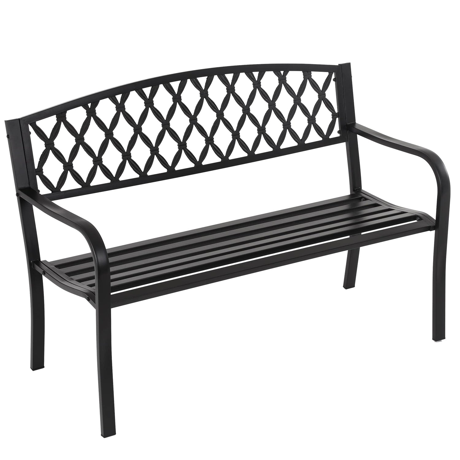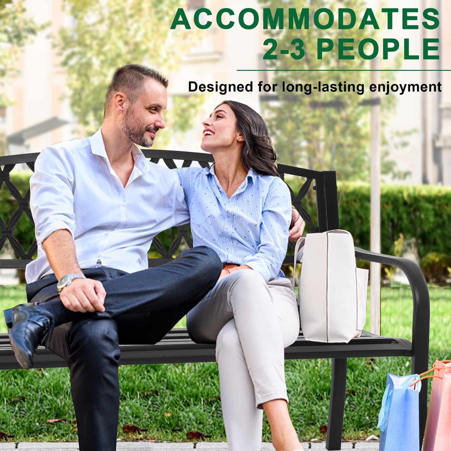 50-Inch Garden Bench,Park Outdoor Bench Metal Bench Clearance Yard Porch Chair with Steel Frame Outdoor Furniture for Backyard Entryway Deck Lawn, Black