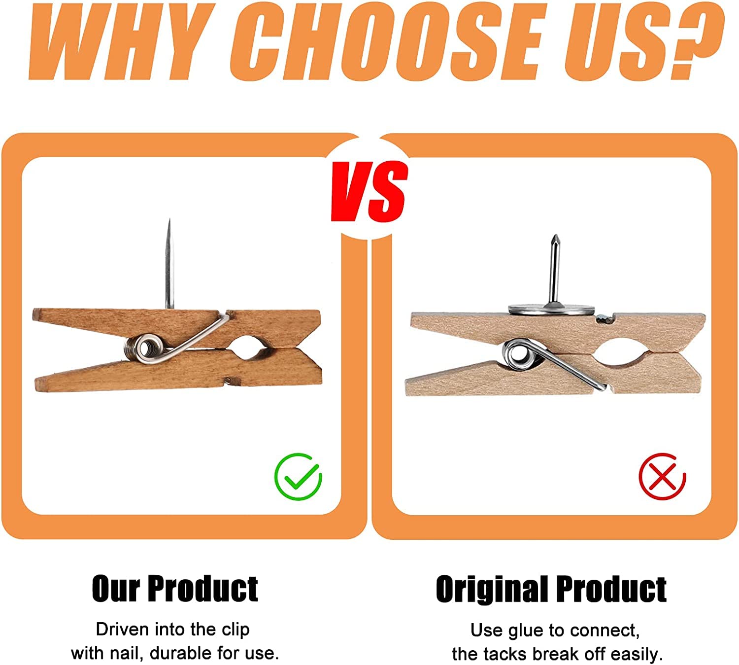 - WHAT YOU GET: 50PCS Push pin with wooden clips, our 7*24 friendly customer service for peace of mind.