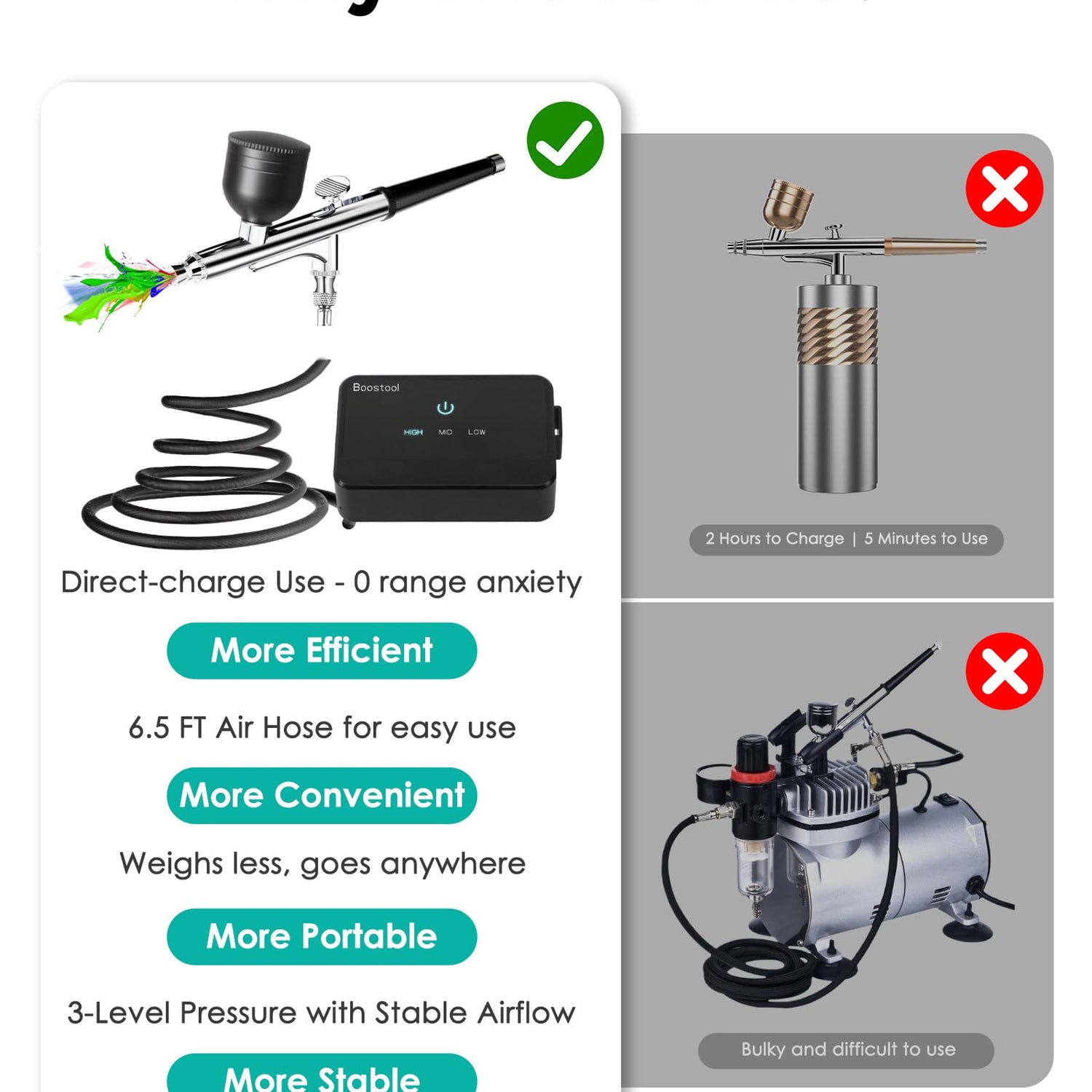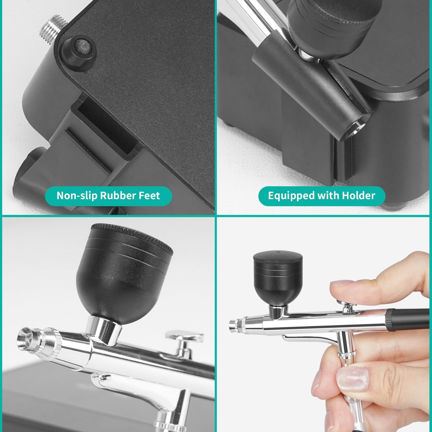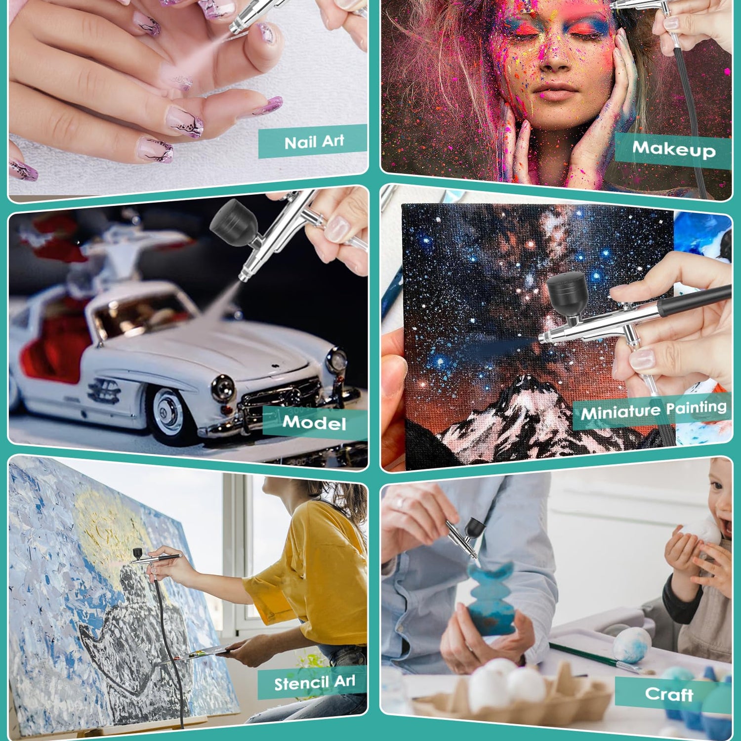 - 【New Airbrush Kit】 Suitable for a variety of applications, this professional grade airbrush kit is ideal for nail art, makeup blending, cake decorating and model painting. In addition, the ultra-portable design compressor can easily fit into your backpack or even your pocket, making it convenient for you to use it more conveniently in your daily life.