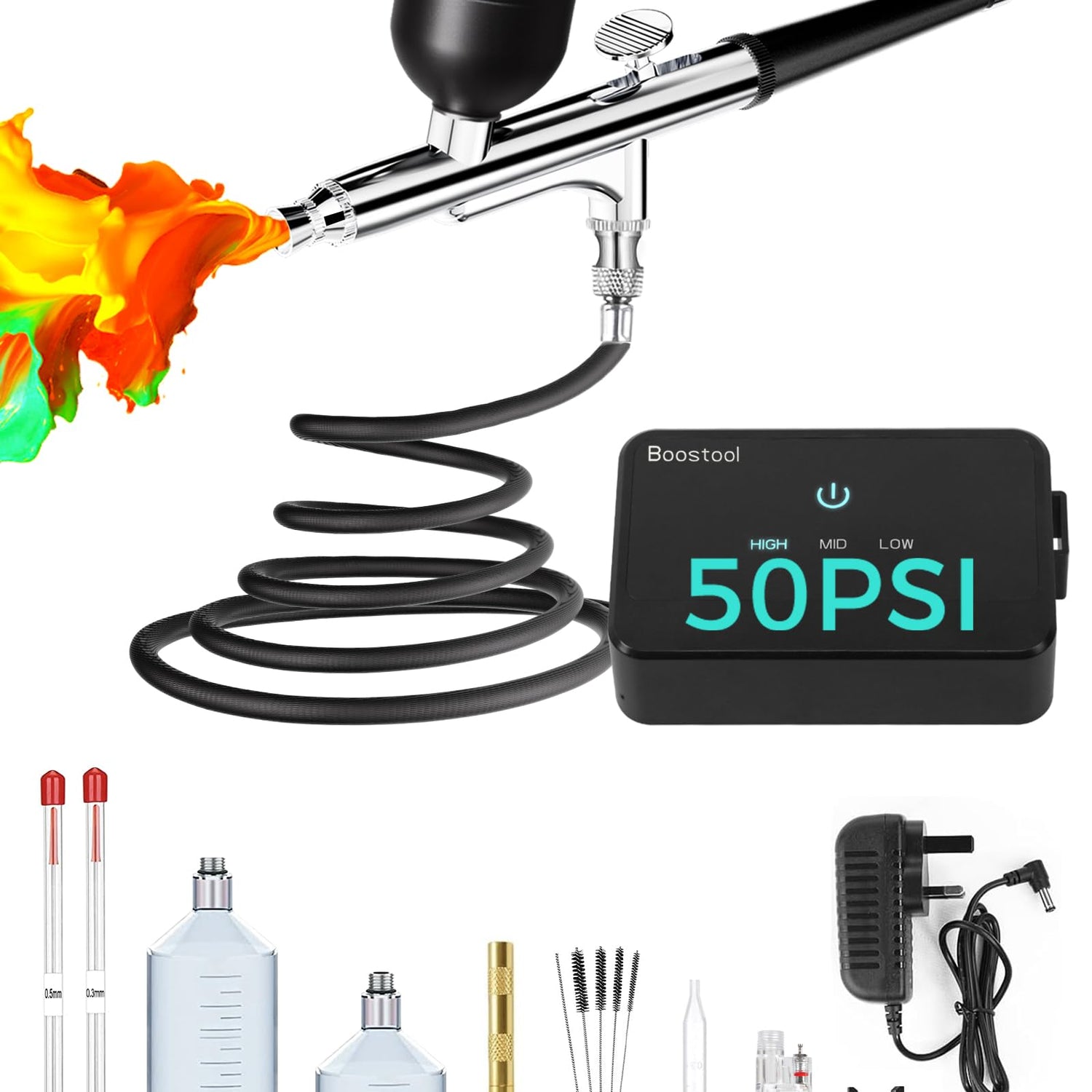 50 PSI Airbrush Kit with Air Compressor, High Pressure Portable Air Brush Gun with 0.2/0.3/0.5mm Nozzle/Cleaning Sets, Airbrush Spray Gun Set for Painting, Makeup, Cake Decor, Tattoo, Nails Art