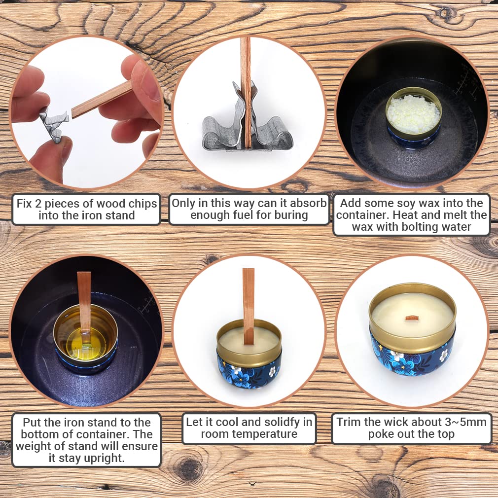 - 【Easy to DIY Your Own Candles】 Fix the wood candle wicks to the iron stand, then put it to the bottom of container, hold the top in the centre when you pour the melted wax. Let the wax cool and solidify, the weight of stand will ensure it stay upright. Essential candle supplies, can fit most jars and containers, ideal for DIY soy wax candle making.