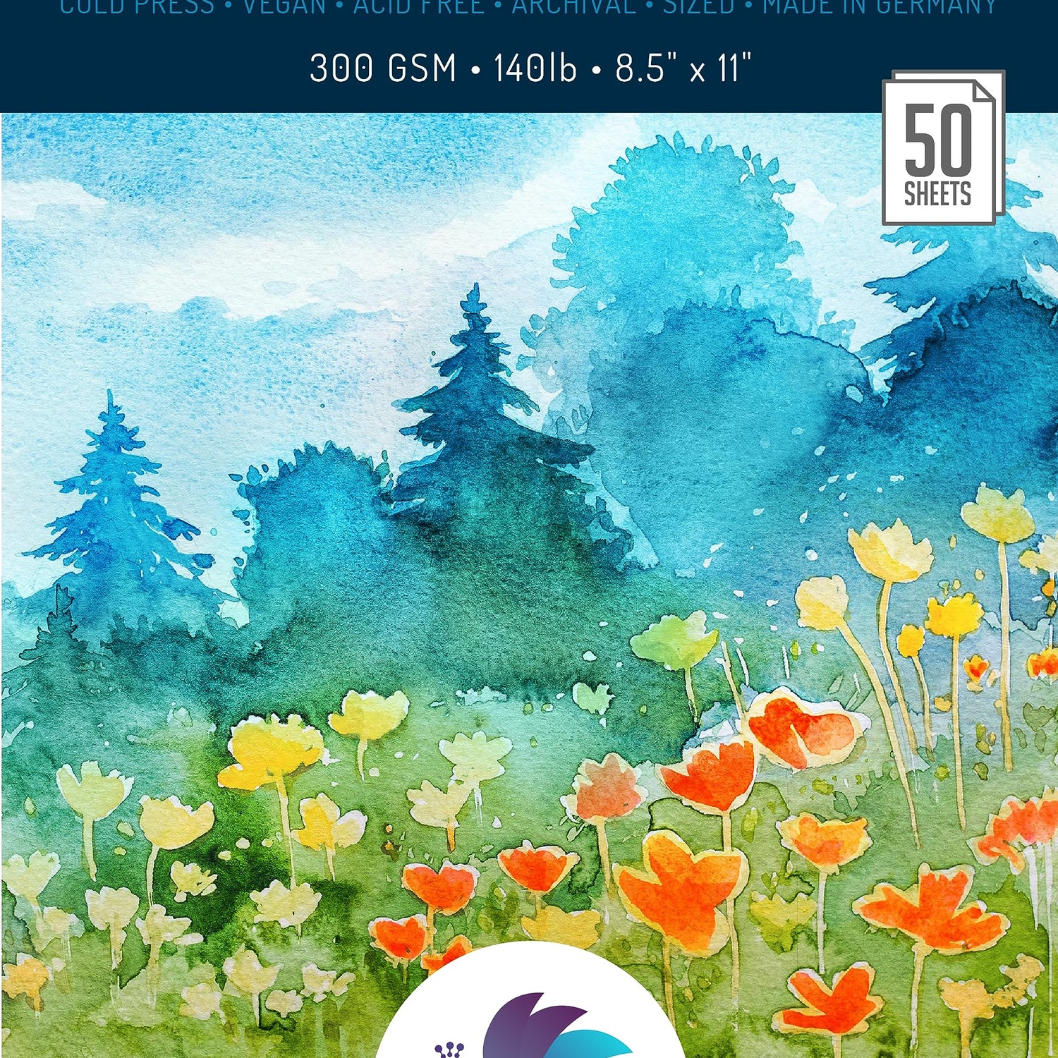 50 Sheets Watercolor Paper White Cold Press (300GSM, 8.5x11)