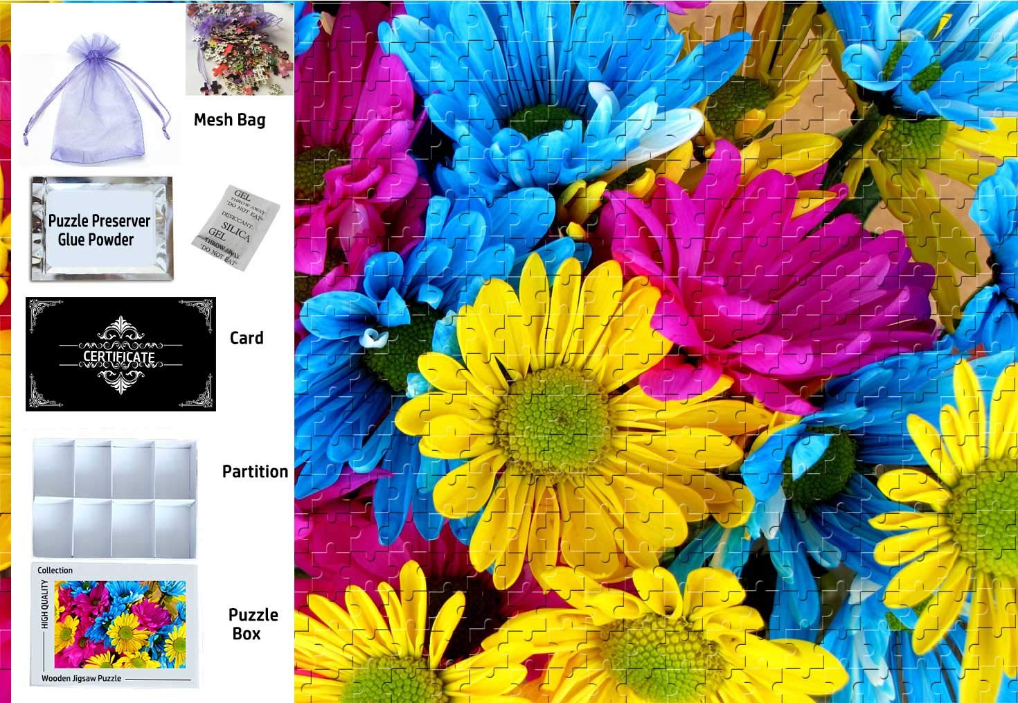 - 1000 Piece Completed size :29.5 X 19.6 inch; 500 Piece Completed size :20.6 X 15.1 inch; The package includes: wooden puzzle pieces + interval divider boards to help complete the puzzle + beautiful mesh bags + brand cards,And each puzzle piece comes with a gift box packaging.