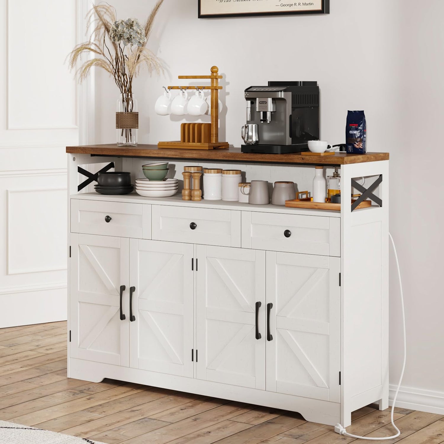 51" Farmhouse Buffet Sideboard Cabinet with Storage, White Kitchen Storage Pantry Cabinet with Drawers, Wood Cupboard Hutch Cabinet, Coffee Bar Station Table for Kitchen, Living Room, Dining Room