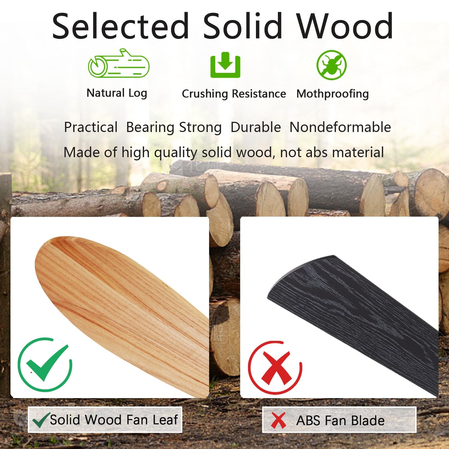 - Silent Ceiling Fan: 52-inch solid wood ceiling fan, low noise, maximum speed 185r/min, decibel less than 30DB, suitable for use in the living room, study, farmhouse, etc., can be installed on the concrete roof to use, tilt 15 degrees.
