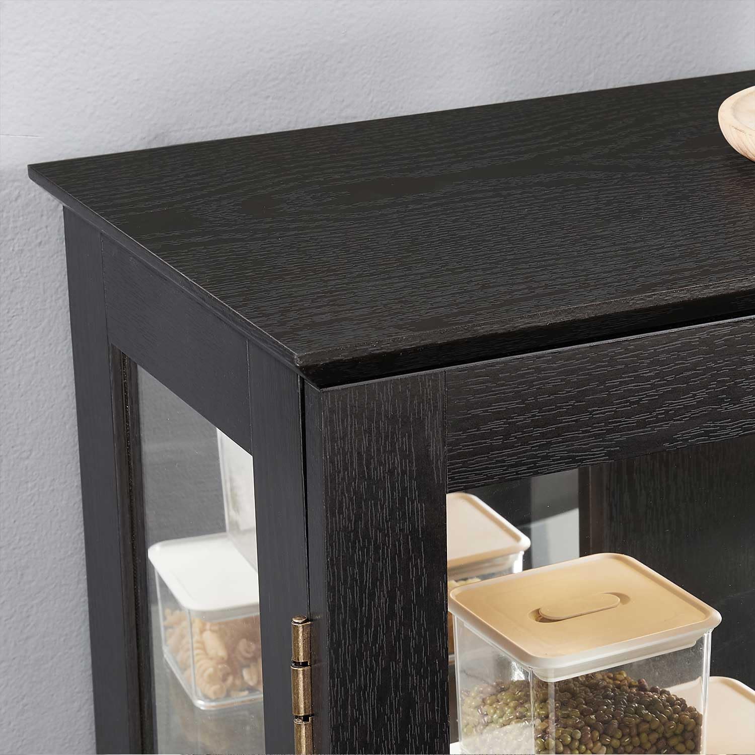 - ELEGANT AND FUNCTIONAL STORAGE: Glass doors protect displayed items from dust, while the spacious lower drawer offers concealed storage for linens, photo albums, or accessories. Stylish metal handles add a vintage touch to the design.