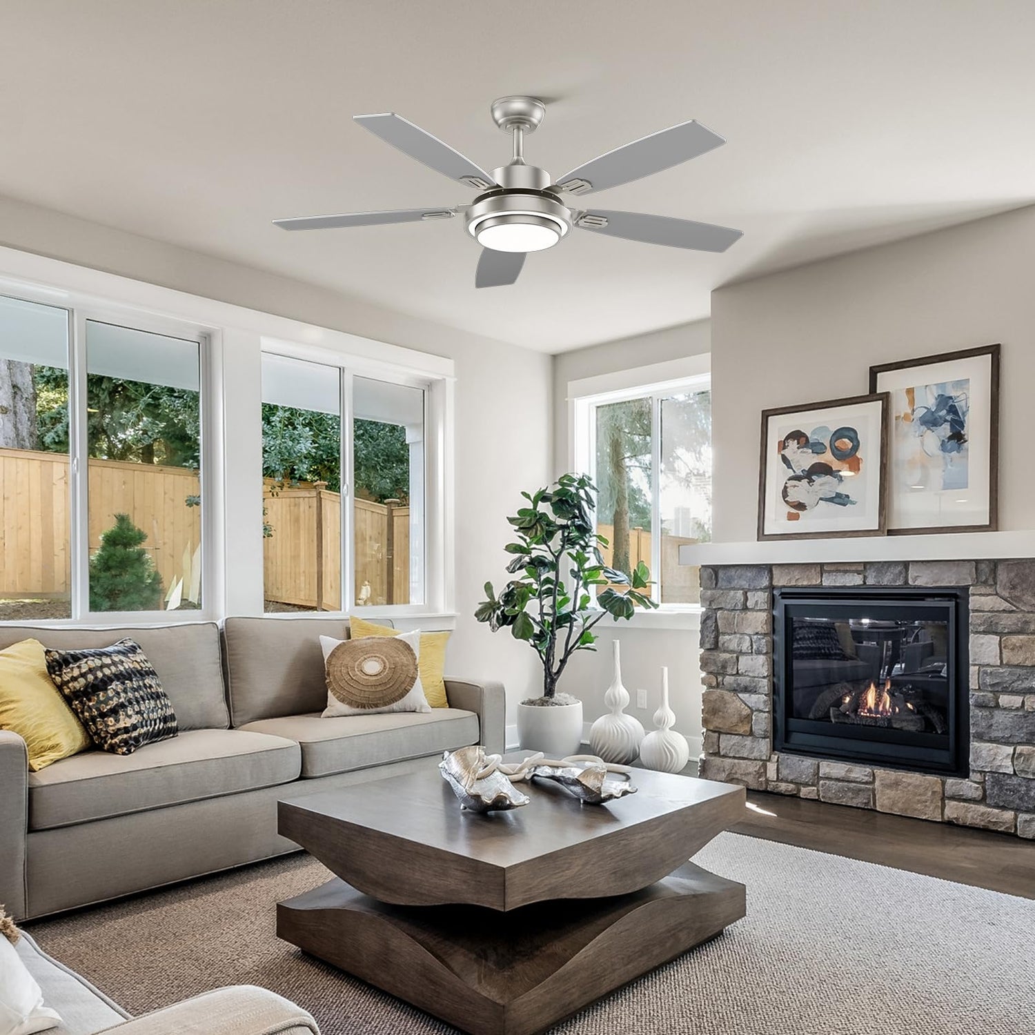 • 【Efficient & Silent】The 52 inch ceiling fan with light has a working noise of less than 35dB, which is suitable for bedroom. In addition, it has high energy efficiency and consumes 70% less power than AC motors.