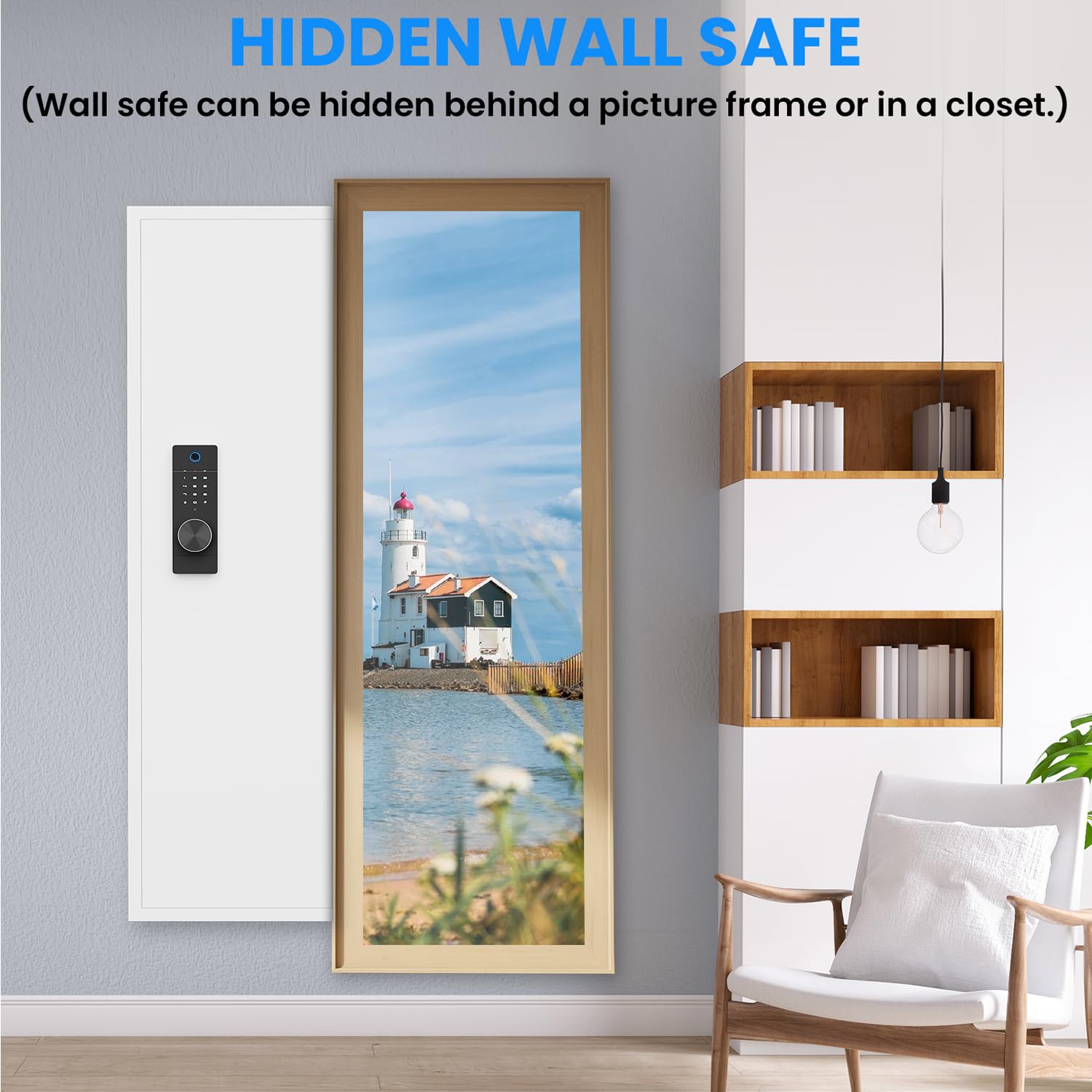 - 【Hidden Gun Safe】The in-wall gun safe is a secret between the studs. It can be placed in any room, such as the foyer, living room, home office, bedroom or even bathroom. Not only is it hidden and not easy to be found, but it also does not take up space and is more beautiful