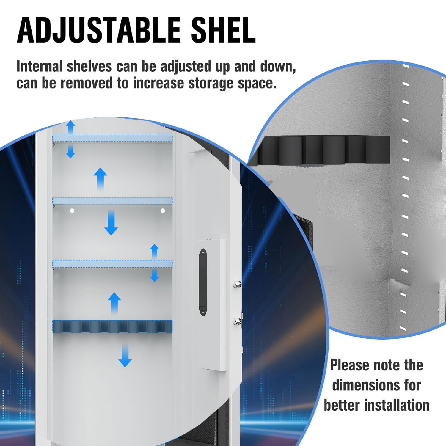 - 【Customized Storage Space】Larger wall-mounted gun safe for rifles and pistols. External dimensions: 3.93 inches deep x 15.74 inches wide x 53.15 inches high. Equipped with adjustable and removable dividers and gun stocks. You can configure the interior space as needed. Whether it is guns, documents, jewelry or other valuables, you can adjust the dividers to get the perfect layout