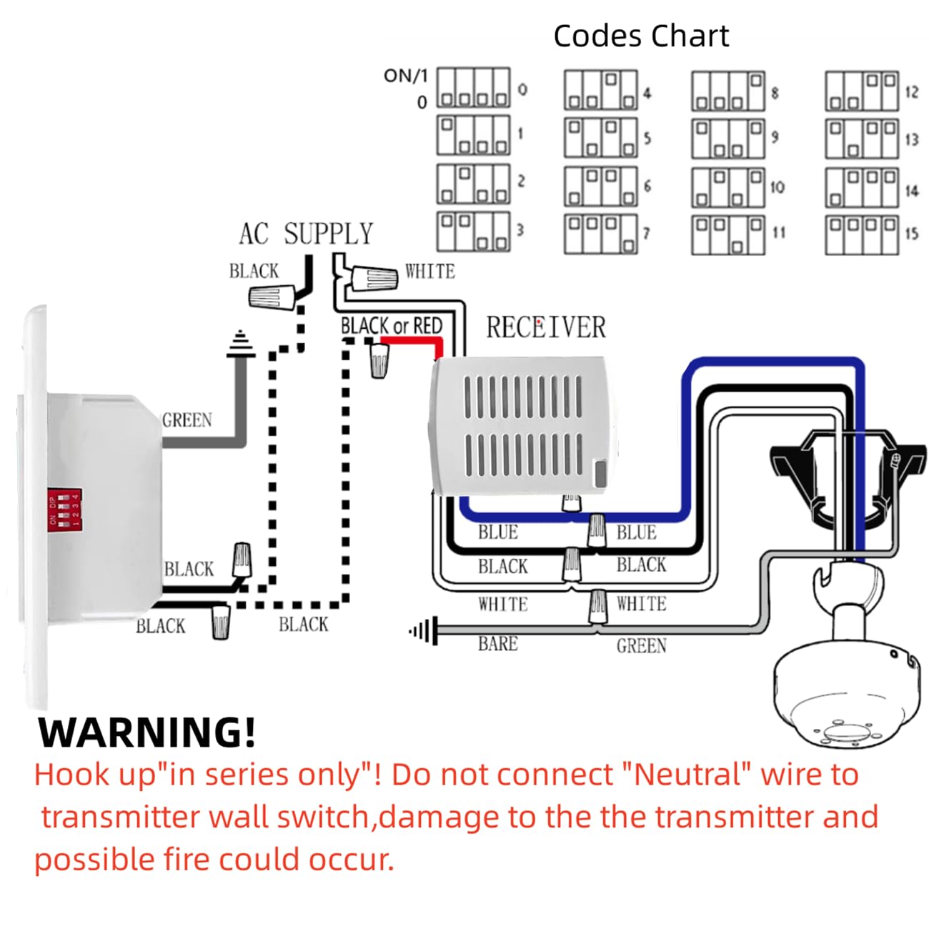 - Simple Installation: New Designed for wired wall-mounted use; 16 selectable code frequencies for versatile operation,, remotely controls both fan speed and light operation,