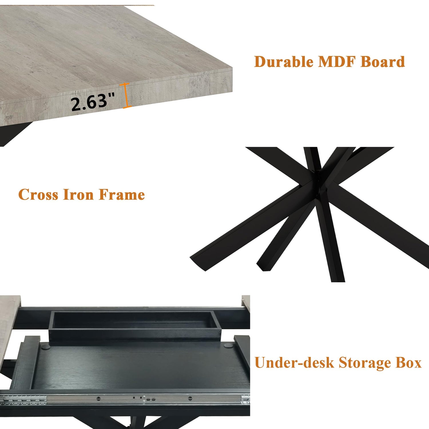 - [ Easily Extendable Dining Room Table ] - This extendable dining table is a nice mix of warm grey veneer and sturdy solid metal, and is inspired by rustic design. Its size of the table was 55.1"L x 31.5"W x 29.9"H. By assembling removable center leaf, the large dining table can be extended to a length of up to 70.8". And the extra leaf can be stored within easy reach under the table top when not in use.