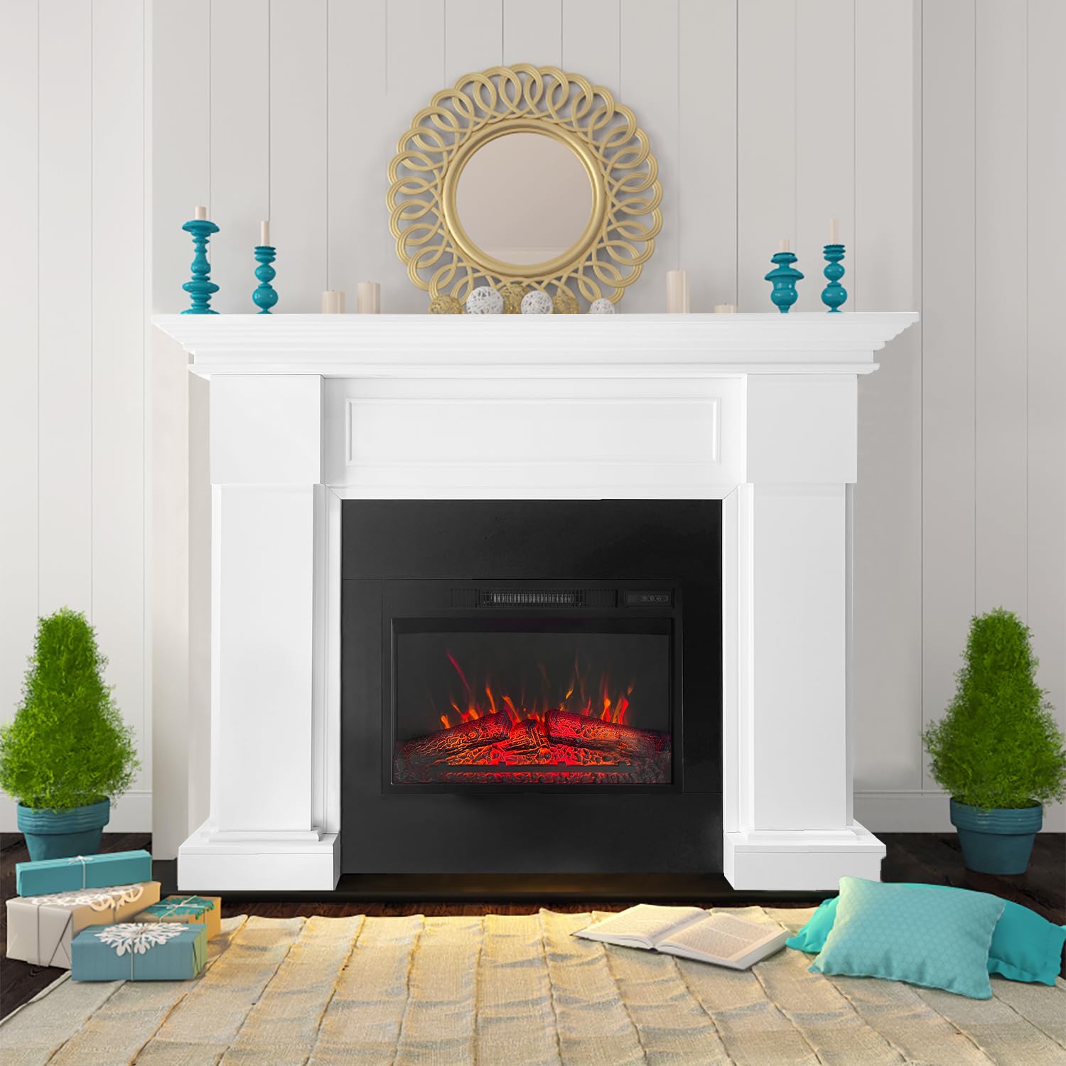 55 Inch Electric Fireplace with Mantel, Elegant Heater for Living Room or Bedroom with Remote Control and LED Flame Effects, White