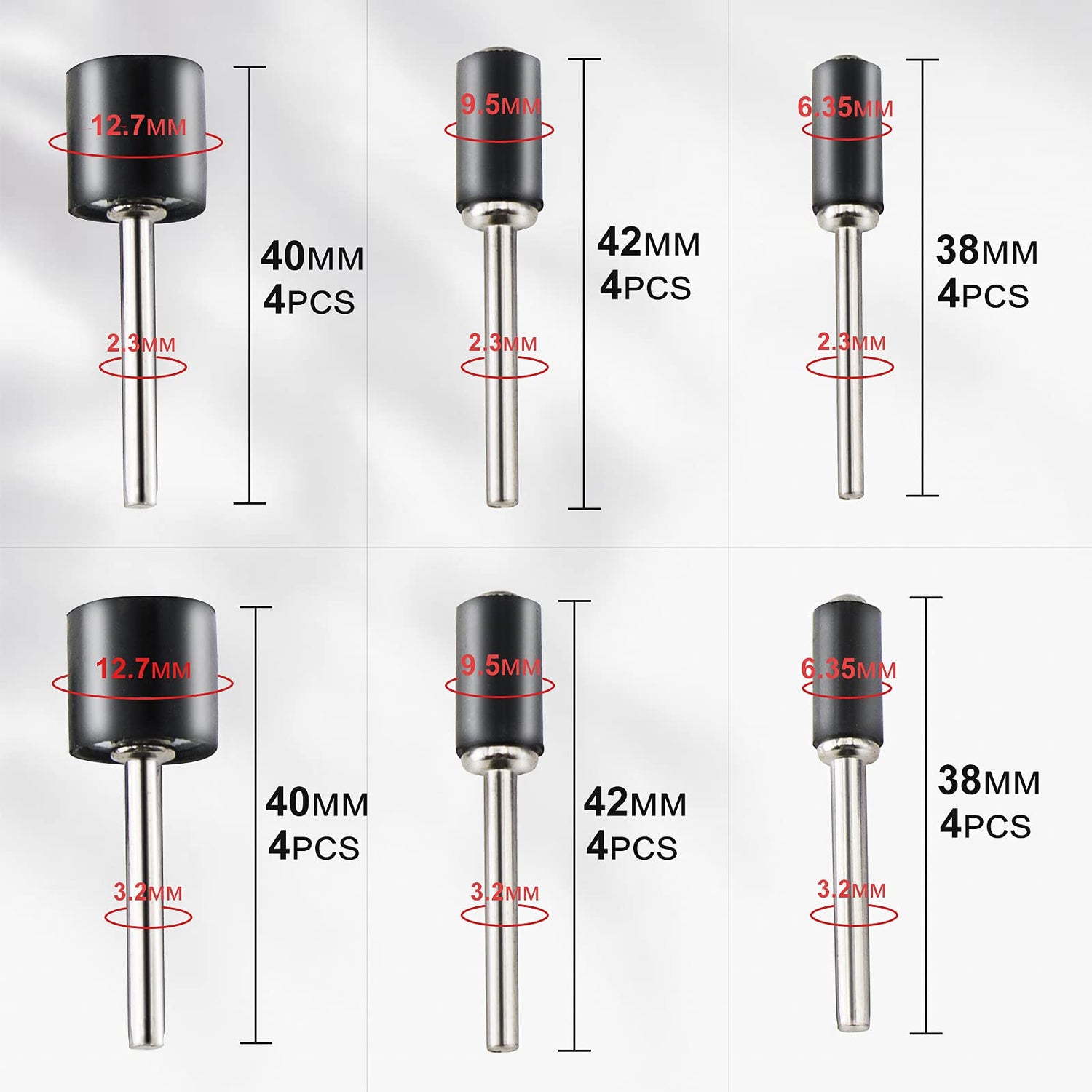 - 3 Sand Drum Sizes: Each grit specification includes 3 sizes, the diameters are 1/2”, 3/8” and 1/4. We also have 24pcs drum mandrels and 2pcs self-tightening drill chuck matching those sand drums
