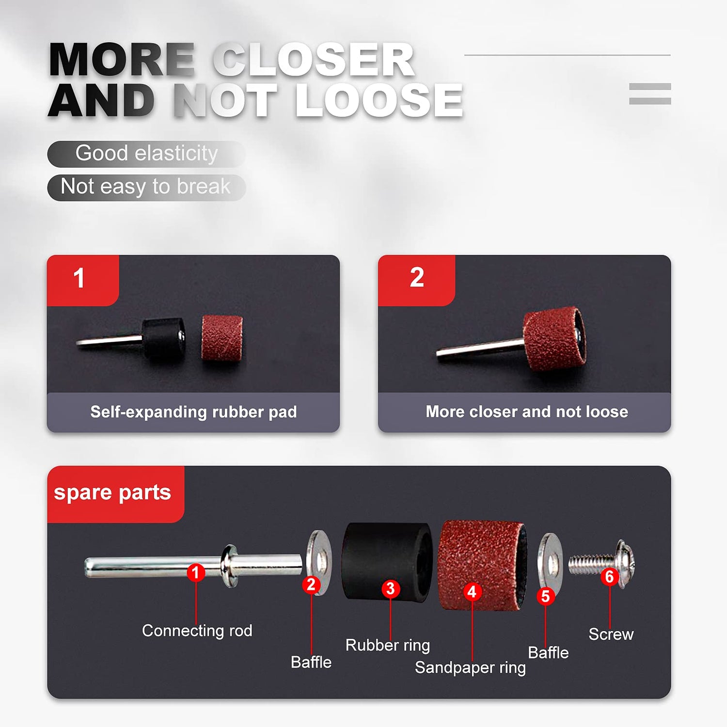 - 7 Grits Accessories: The sanding drum for dremel rotary tool contains7 grit specifications, which are 80#, 120#, 180#, 240#, 320#, 400# and 600#.