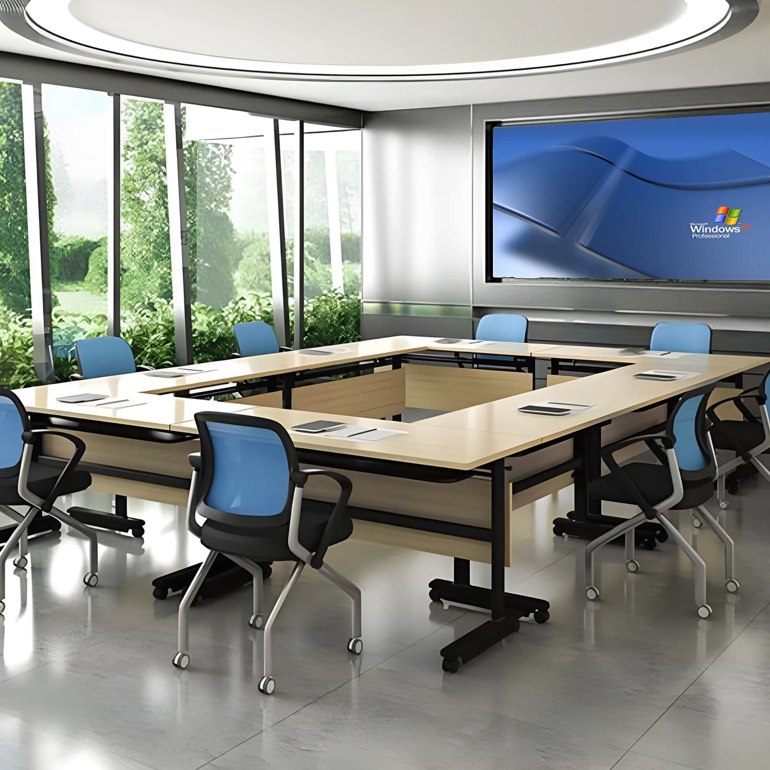 - √STURDY DESKTOP&ALUMINUM ALLOY LEGS-The conference table desktop adopts a thickened design, PVC smooth edge sealing, E1 grade environmentally friendly board, resistant to scratches, easy to clean, and free from water and oil. It is heat-resistant and high-temperature resistant. The material of the folding conference table table legs is aluminum alloy, which is more stable and durable