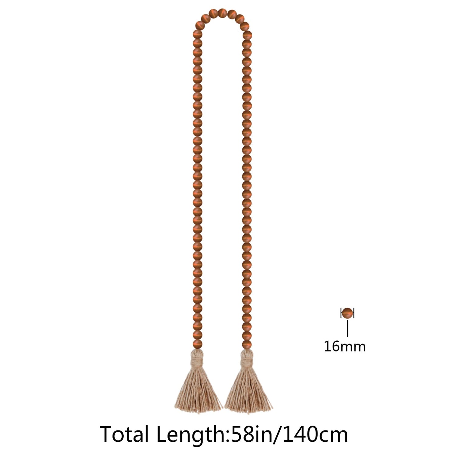 58in Wood Bead Garland with Tassels,Farmhouse Beads Rustic Country Decor Prayer Boho Beads Wall Hanging Decoration (Brown)