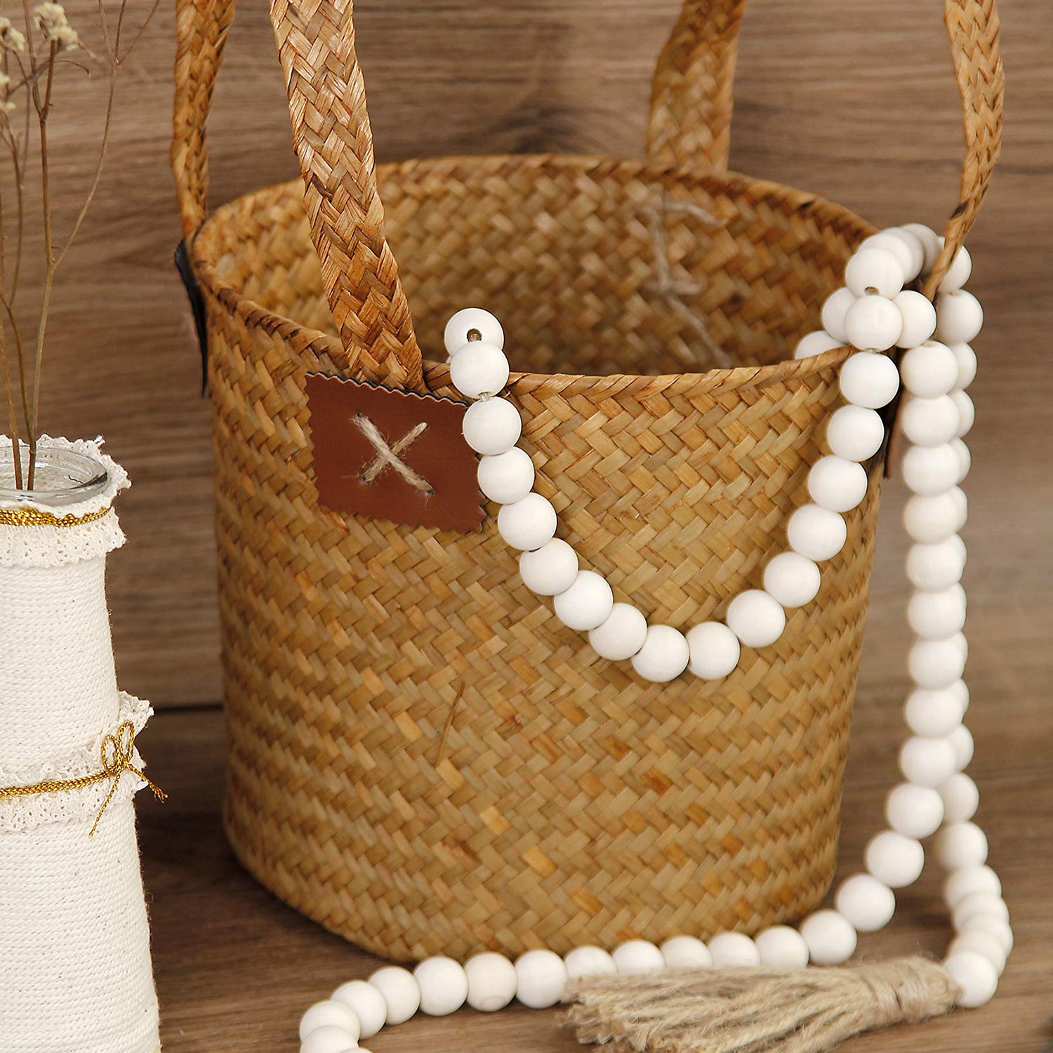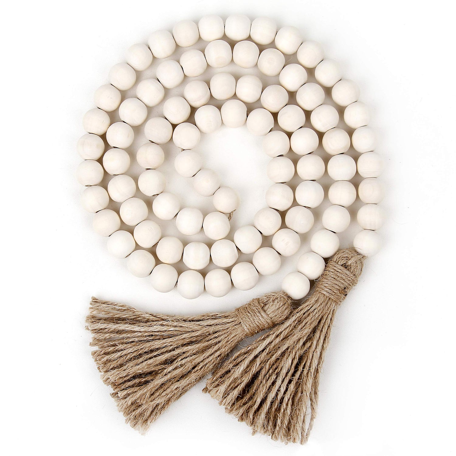 58in Wood Bead Garland with Tassels,Farmhouse Beads Rustic Country Decor Prayer Boho Beads Wall Hanging Decoration (Nature)