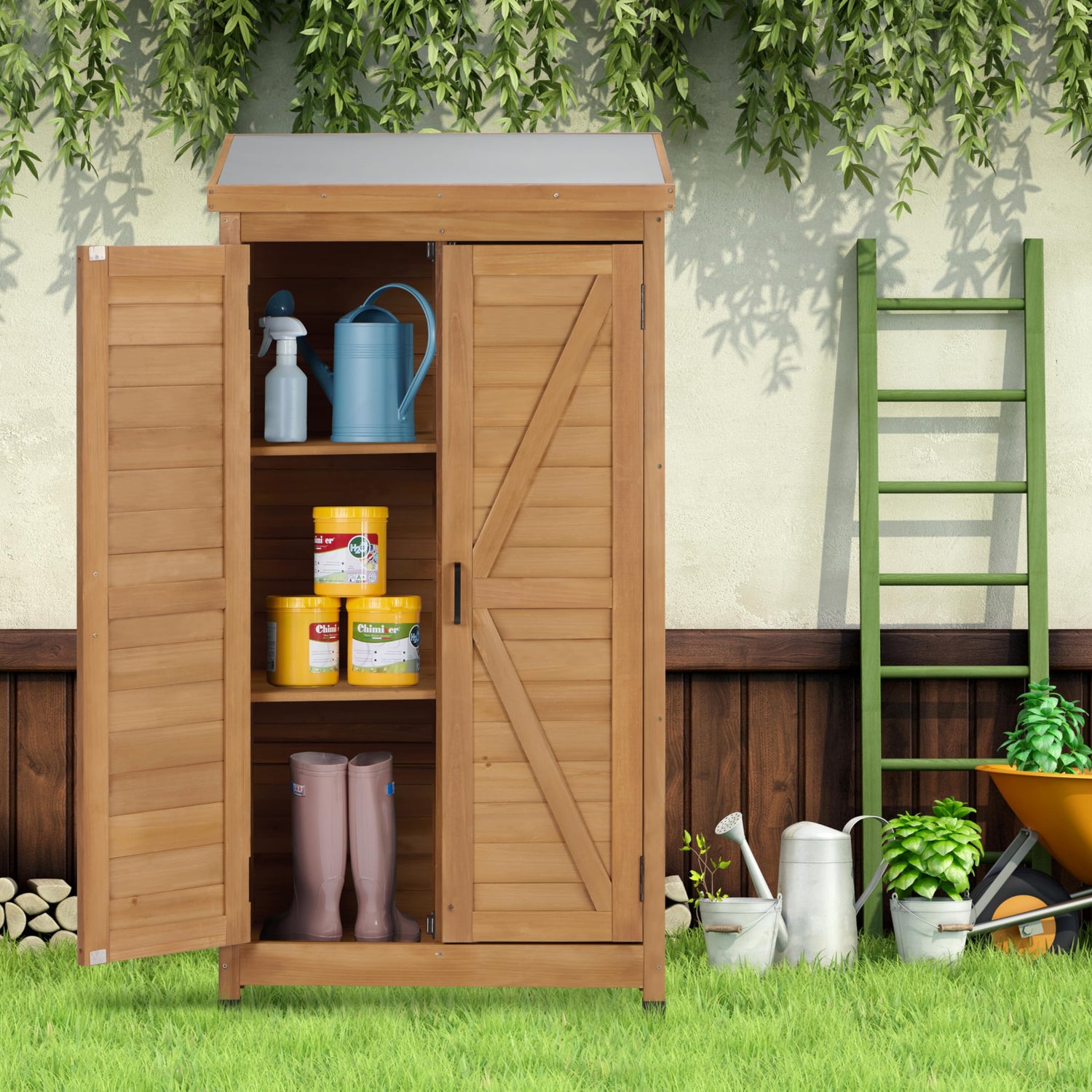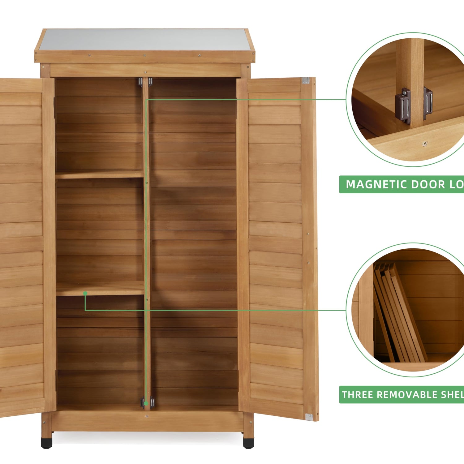 - Multifunctional Storage Cabinet: Wood storage cabinet serves various purposes: utility tool closet shed, garden shed, pool supplies vertical storage, or patio storage for lawn and gardening tools, sports equipment. Suitable for garden, patio, porch, garage, etc.