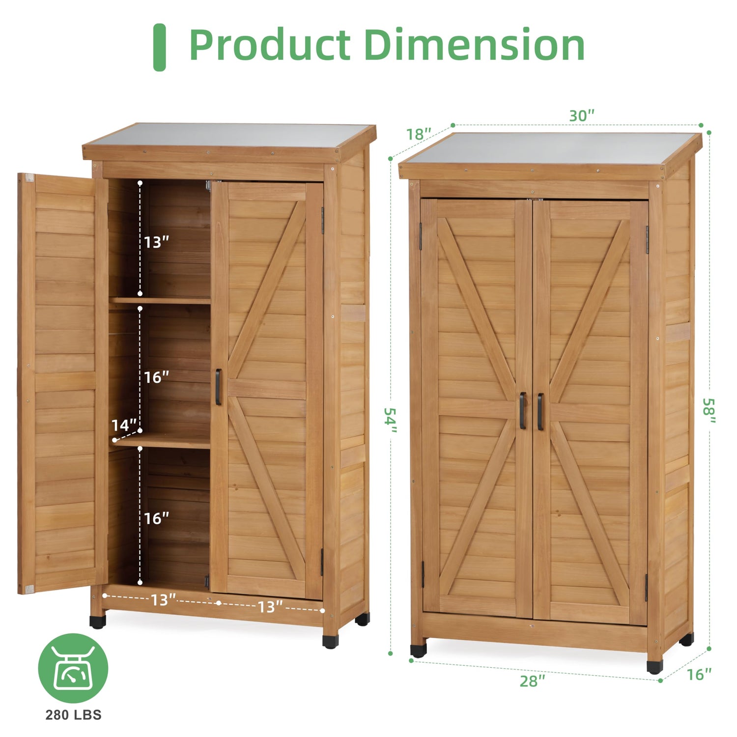 58''x30''x18'' Outdoor Wooden Storage Shed with Metal Top Tall Vertical Tool Cabinet for Backyard Garden Patio Lawn (Gold)