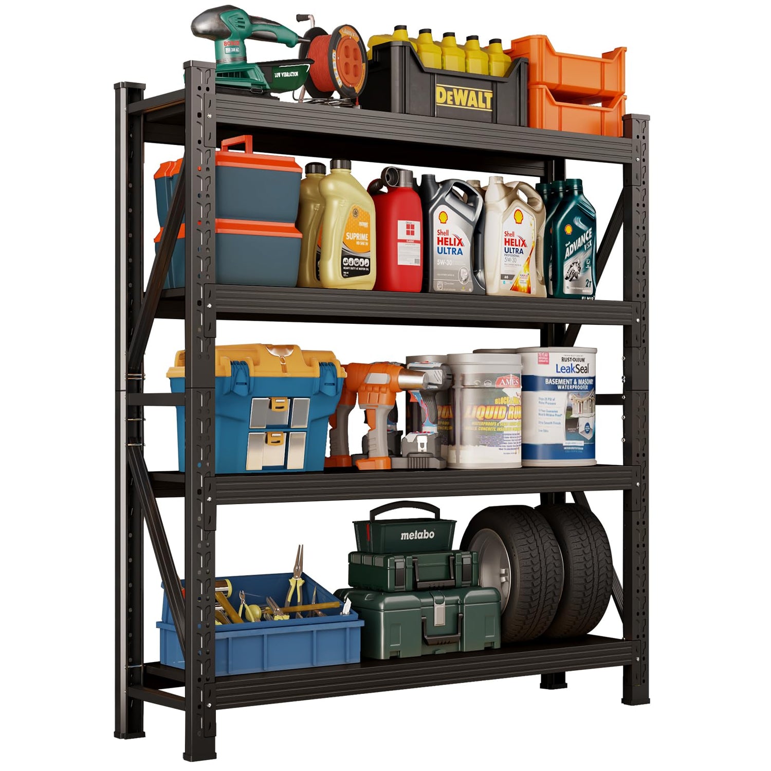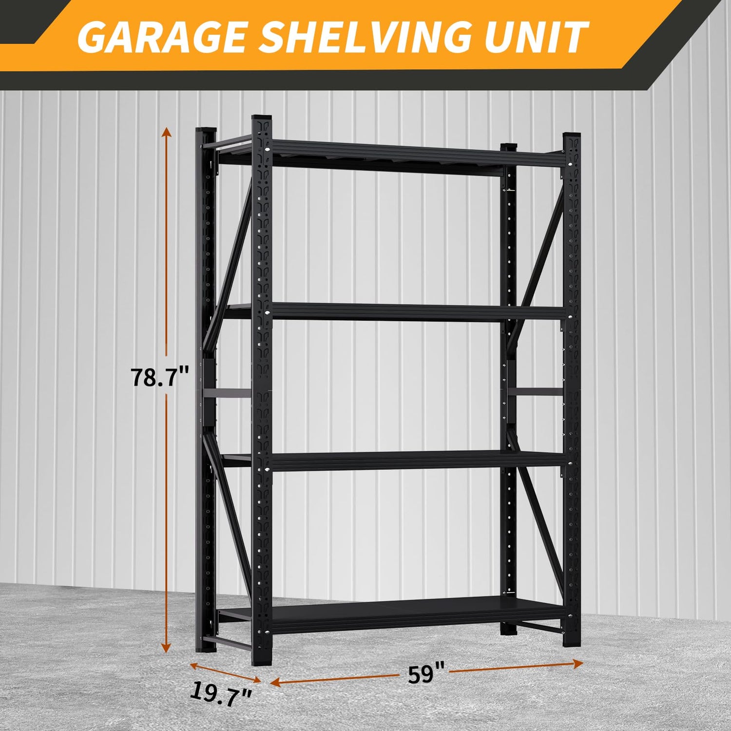 59" W Garage Shelving Units, Heavy Duty Garage 4500LBS Metal Shelves, 4 Tier Adjustable Organization Utility Shelf Storage Rack for Industrial, Basement, Warehouse (Black, 19.7" D×59" W×78.7" H)