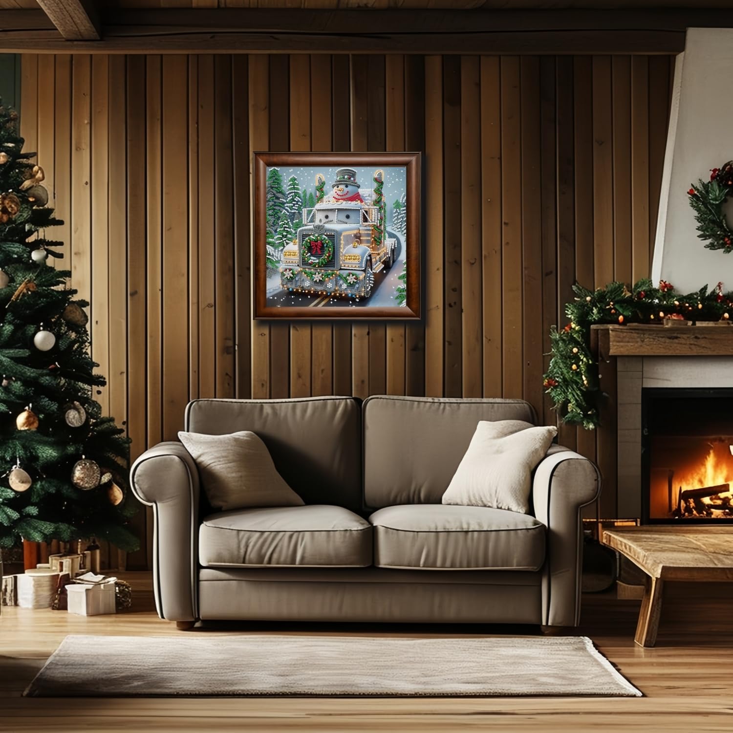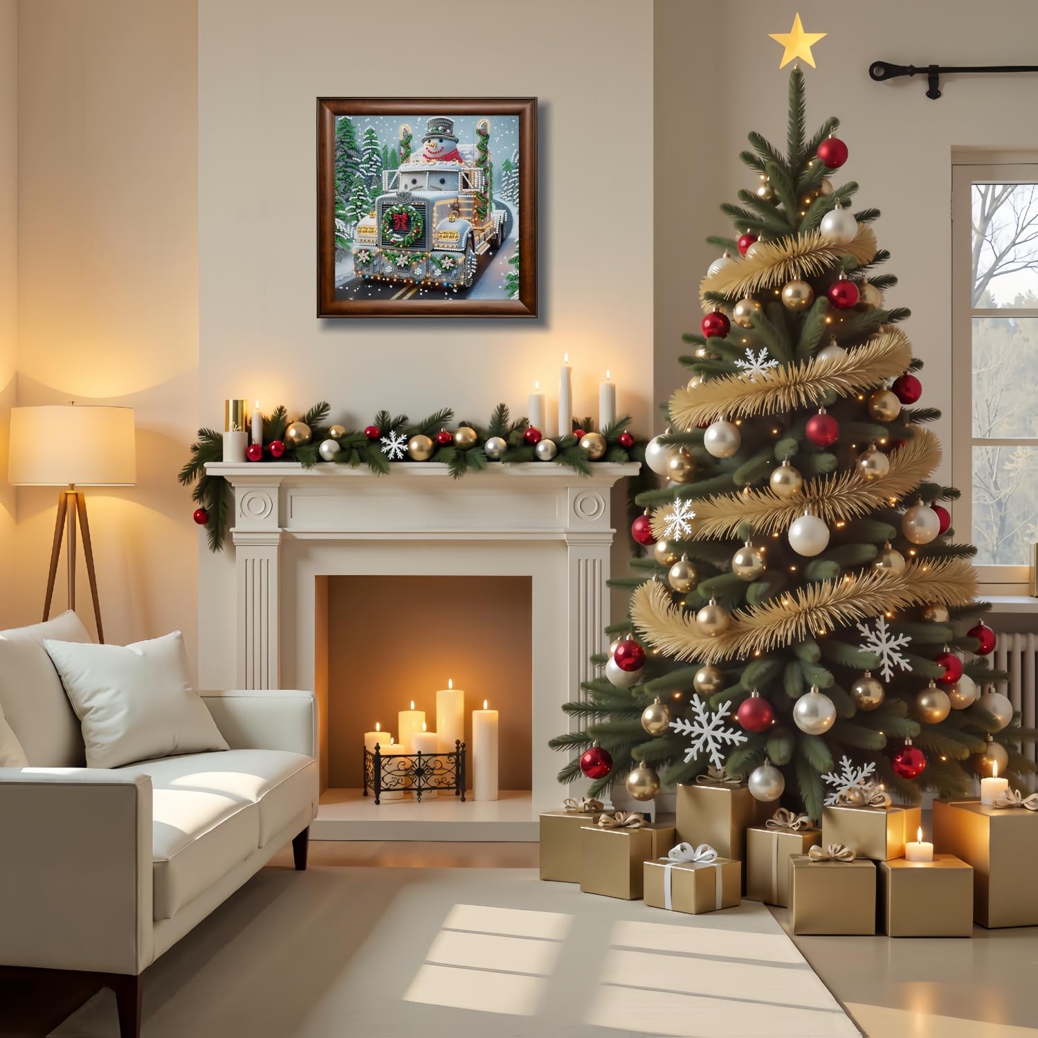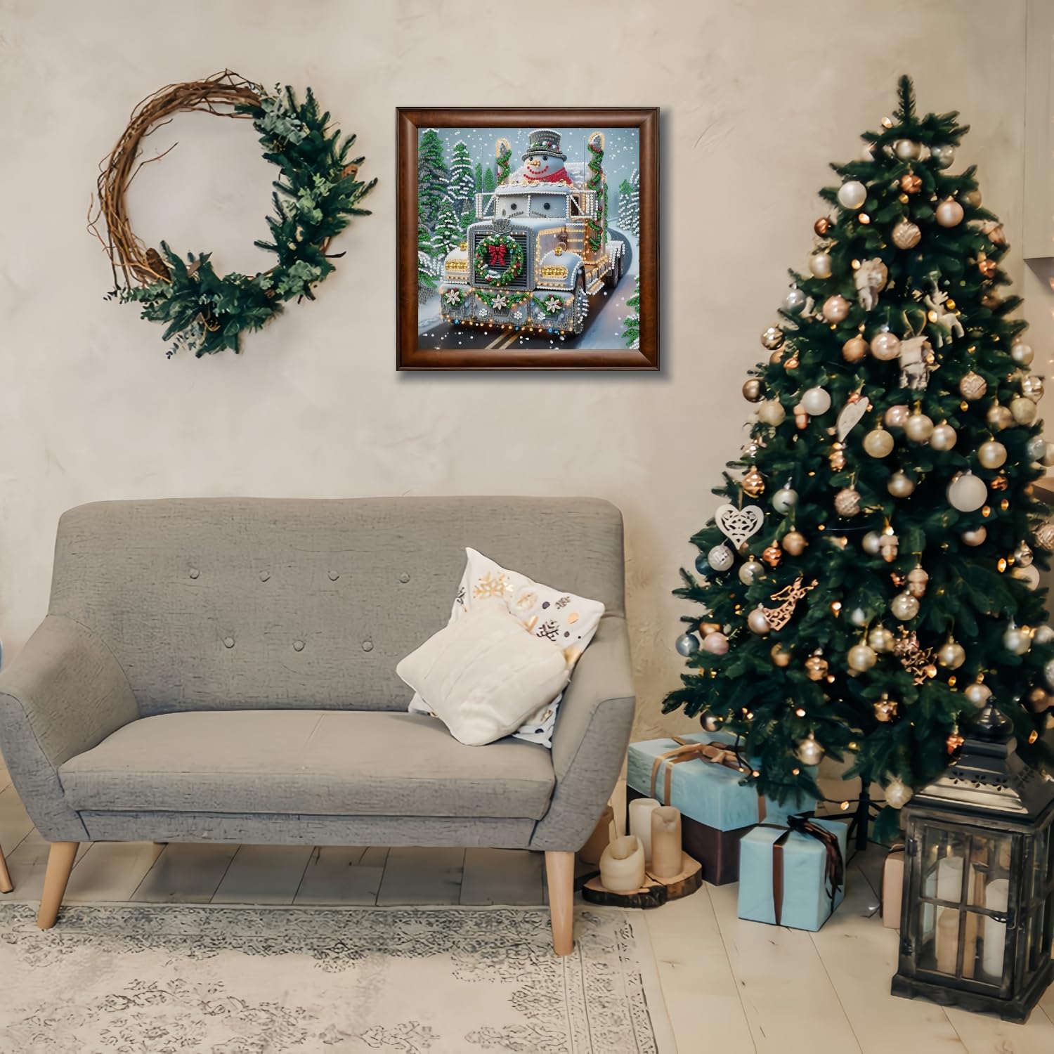 5D Christmas Diamond Art kits for Adults, Snowman Truck Special Shape Diamond Painting for Beginners, DIY Drill Crystal Rhinestone Diamond Dot Gem Art Kits for Adults, Home Wall Decor 11.8X11.8 Inch