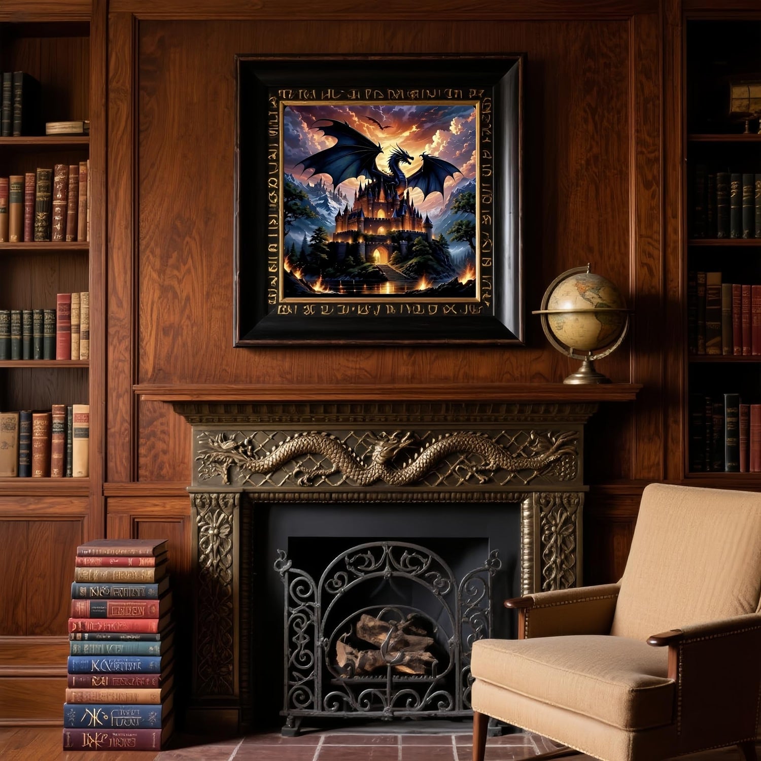 5D Diamond Art Kits for Adults Beginners Dragon Castle,DIY Full Round Drill Diamond Painting Kits, Paint by Diamonds Dots Gem Art Crystal Easy,Home Wall Decor 13.78X13.78 Inch
