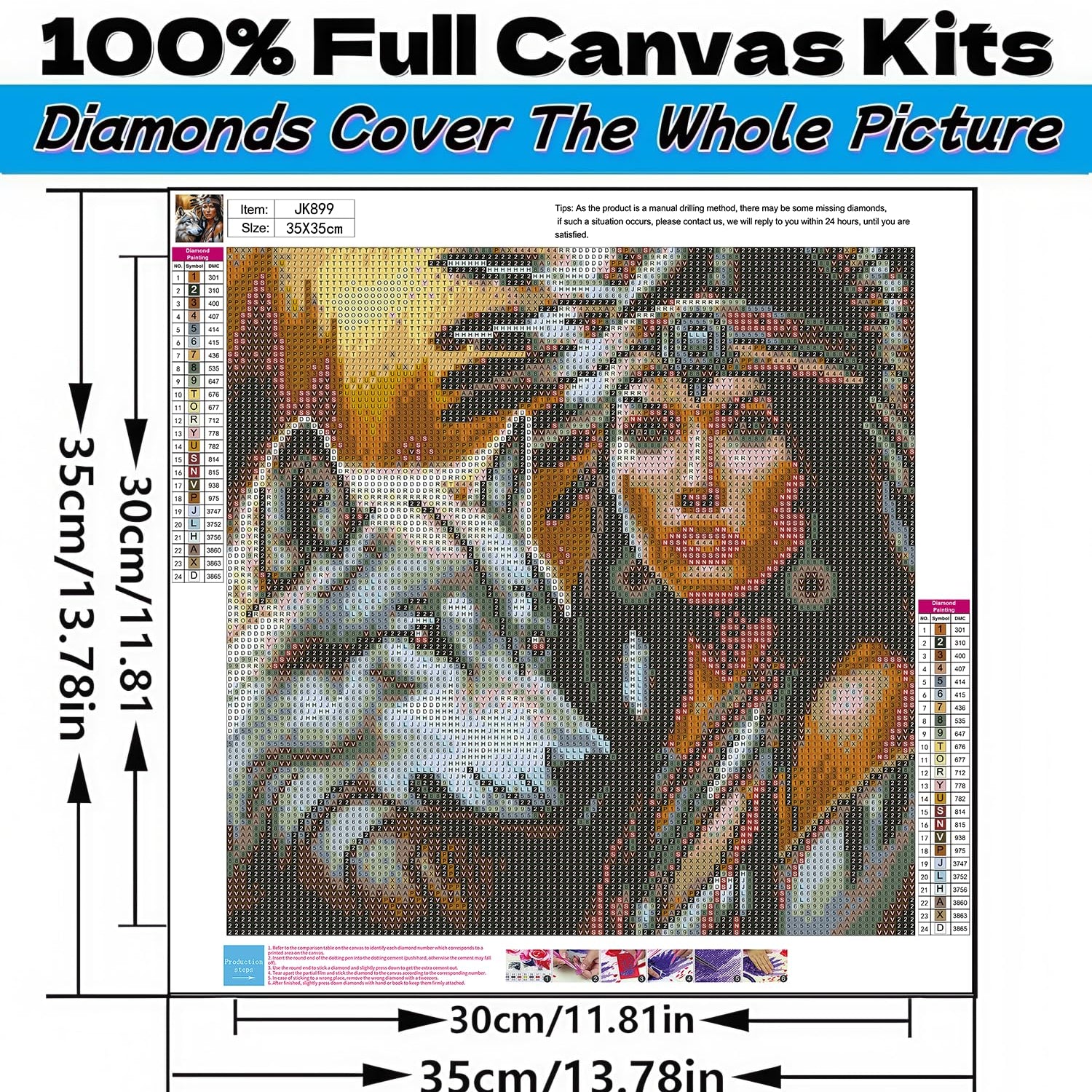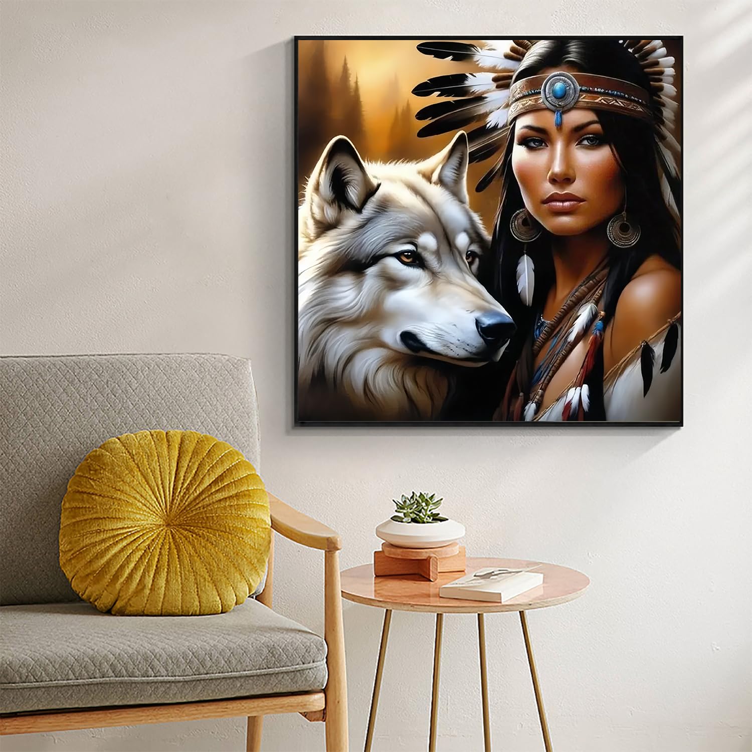 5D Diamond Art Kits for Adults Beginners Indian Wolf,DIY Full Round Drill Diamond Painting Kits, Paint by Diamonds Dots Gem Art Crystal Easy,Home Wall Decor 13.78X13.78 Inch