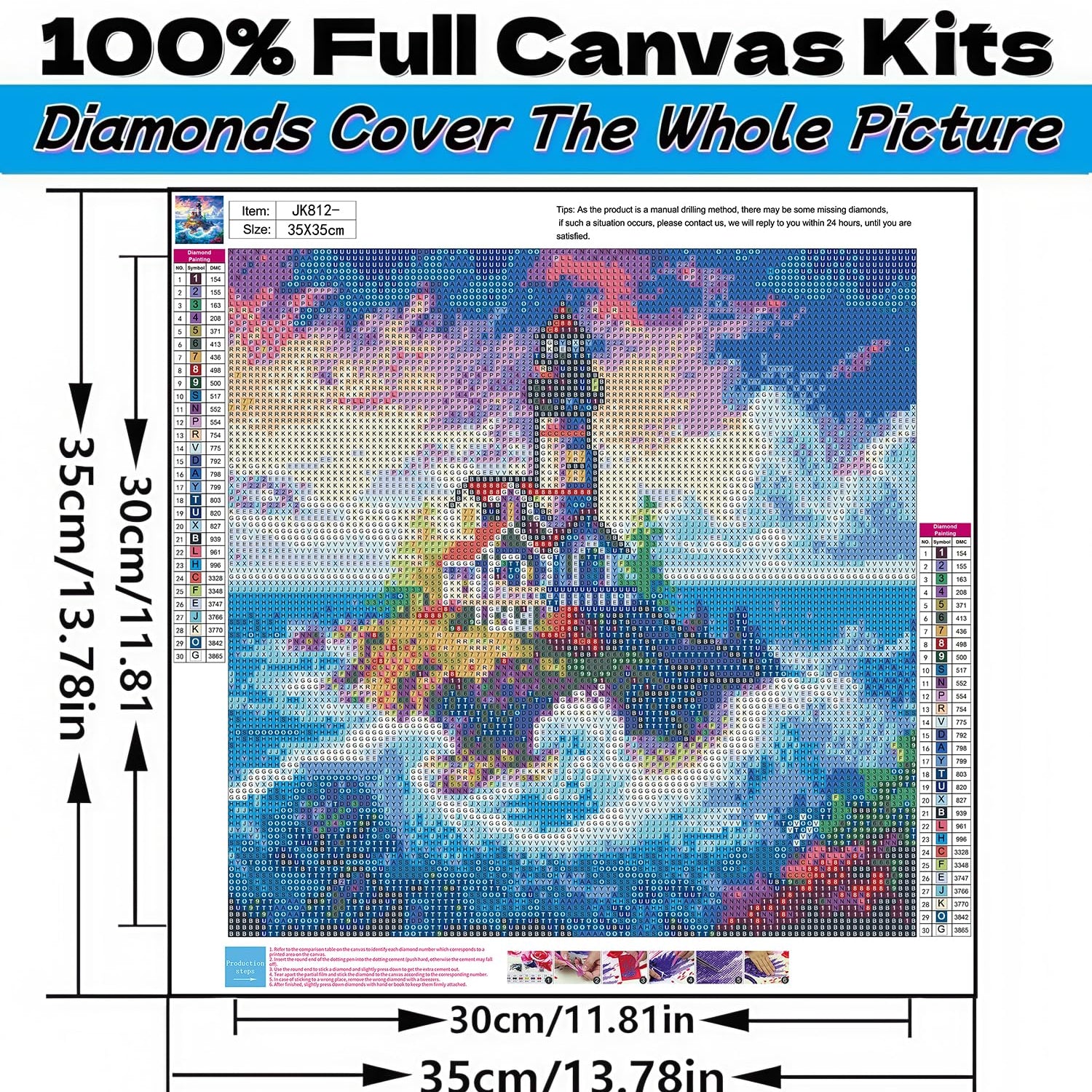 5D Diamond Art Kits for Adults Beginners Ocean Beacon,Sea Tower DIY Full Round Drill Diamond Painting Kits,Lighthouse Paint by Diamonds Dots Gem Art Easy,Home Wall Decor 14X14 Inch