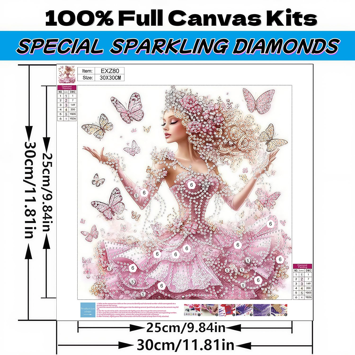 5D Diamond Art Kits for Adults,Dancing Young Woman Special Shape Diamond Painting Kits for Beginners,Butterfly DIY Crystal Paint by Diamonds Dots Gem Art Craft for Home Decor 11.8x11.8 Inch