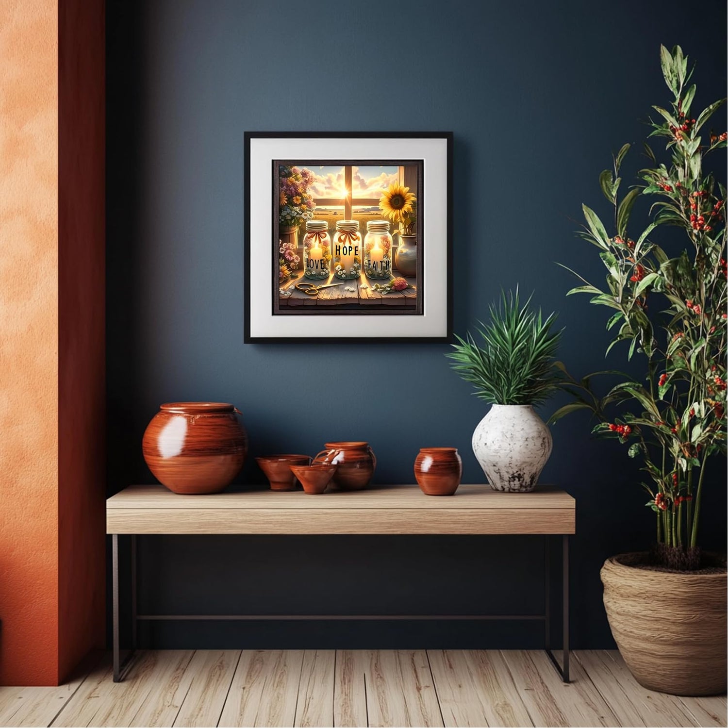 - Diamond Art Kits for Adults Include : The Faith Hope Love diamond painting kits for adults canvas size is12x12In (30x30cm) large enough to show picture details. The glitter diamonds in this religious diamond art painting are consistent in size and shape.The diamonds color will never fade. Finished diamond art painting more brilliant and vivid. The diamond art faith hope and love include pre-printed canvasx1, diamond dot penx1, wax /gluex1, trayx1, zipper bagsx10, anti-slip cap for drill penx1 and color coded diamondsxmany . Kindly note, the frame not inclueded