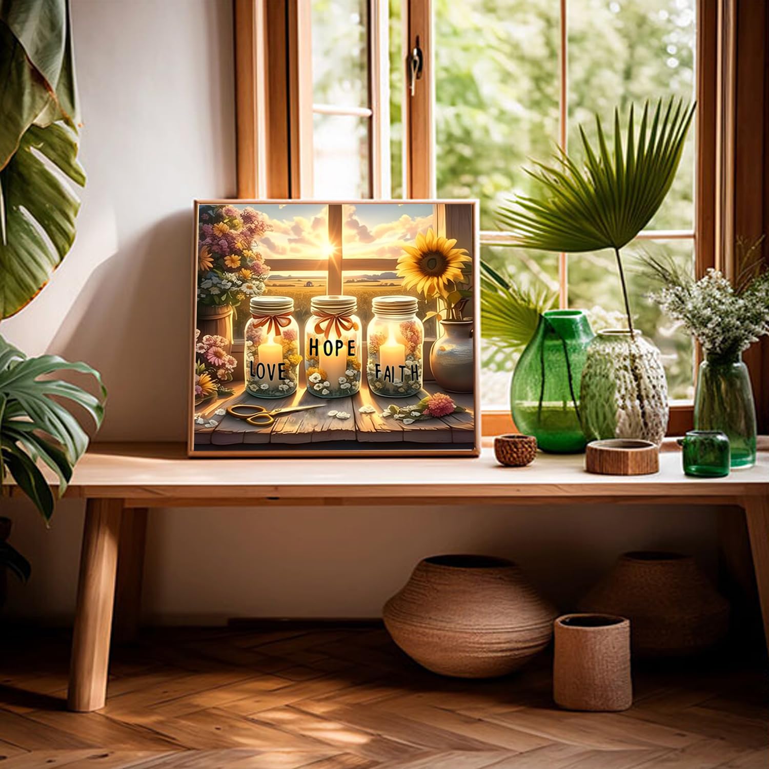 5D Diamond Art Painting Kits for Adults Beginner,Faith,Hope,Love Wishing Bottle Diamond Art On Canvas,DIY Religious Christian Diamond Dots Gem Arts and Crafts for Home Wall Decor 12X12IN