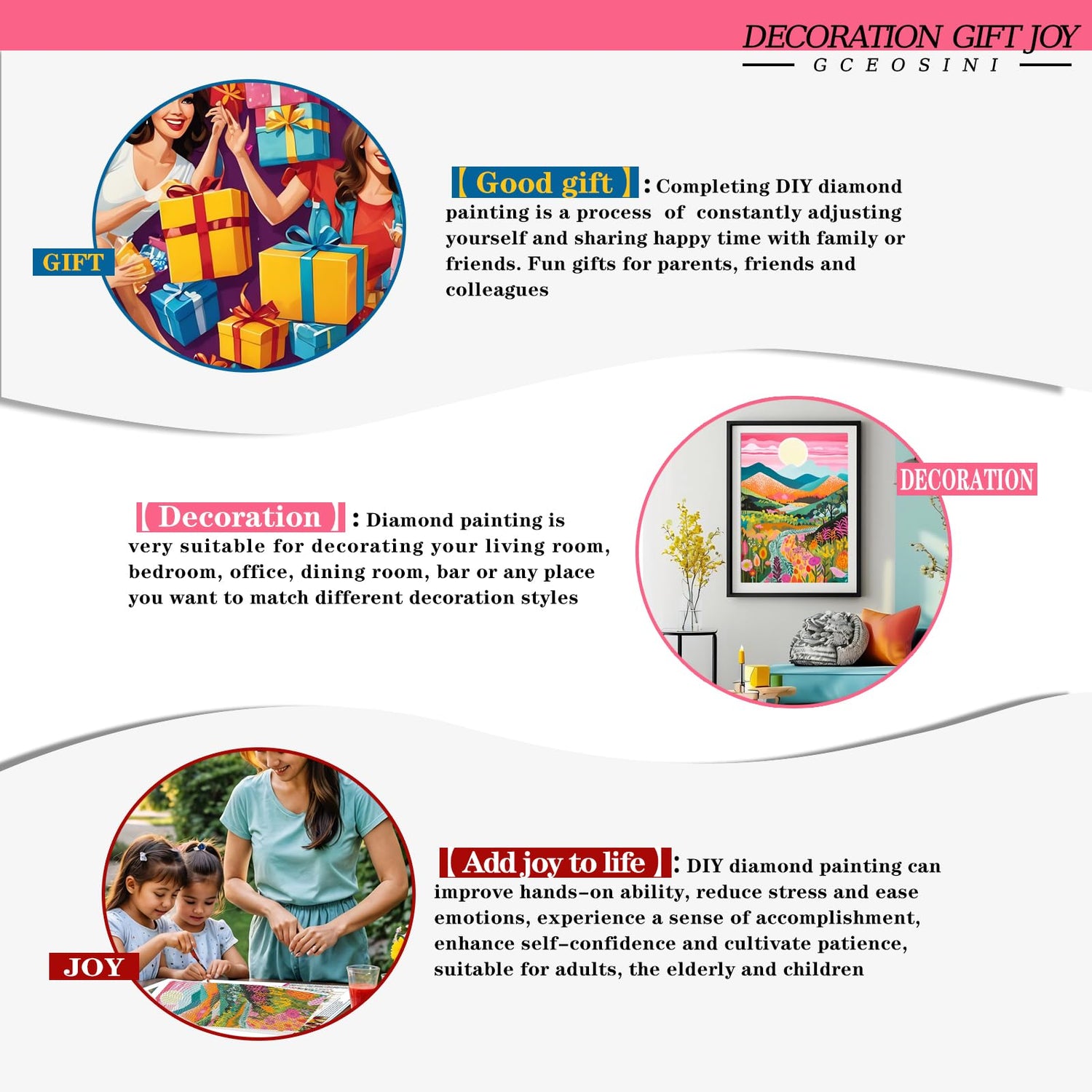 - 【Home Decoration】Each diamond painting can be transformed into an elegant artwork, and the completed diamond painting can be mounted or hung directly on the wall, becoming a striking home decoration that is perfect as a DIY birthday/holiday gift.
