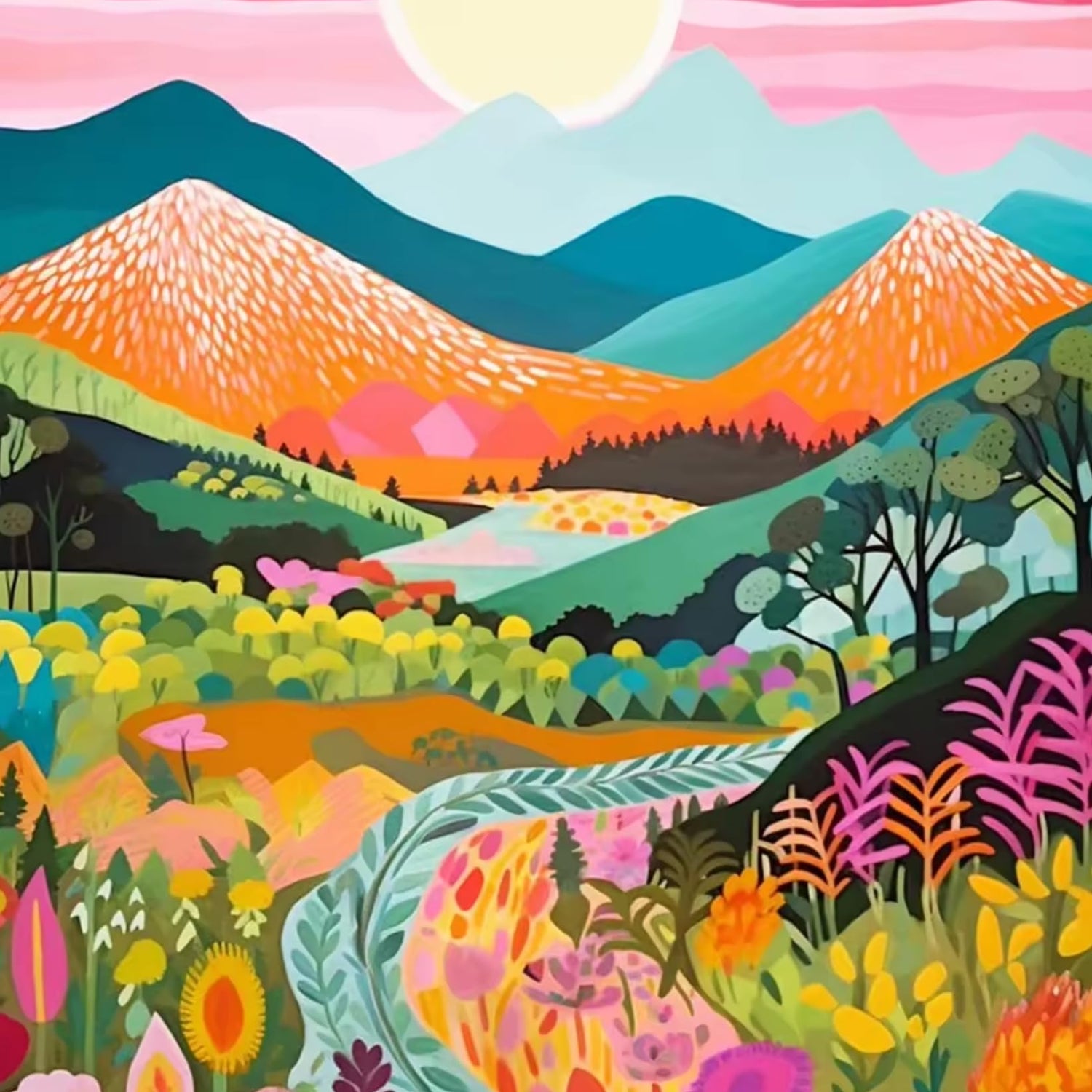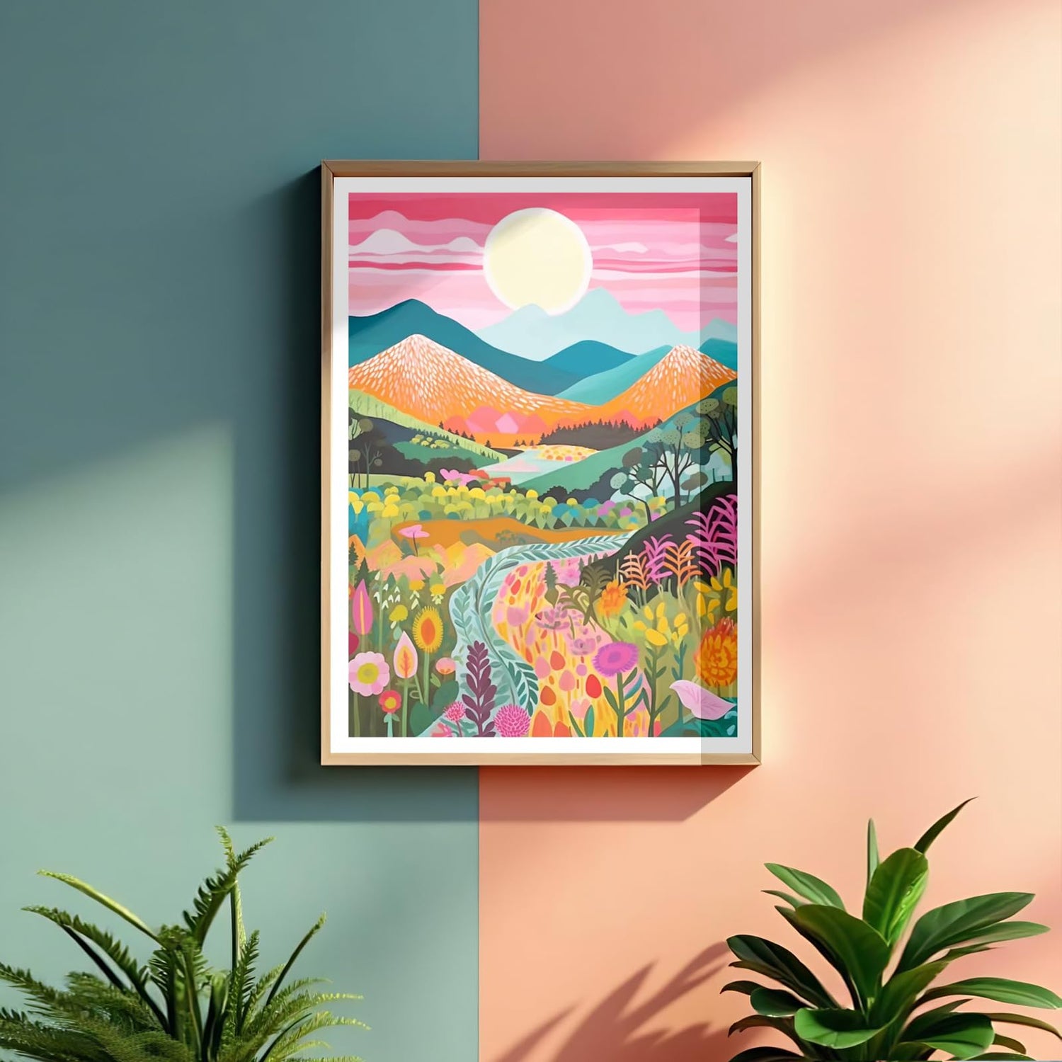 5D Diamond Painting Kits for Adults Beginners Mountain Flower DIY Diamond Art Kits with Tools Full Drill Round Diamond Dots Craft paint by diamonds Gem Art for Home Wall Decor Gifts (16"x12") (DP1795)