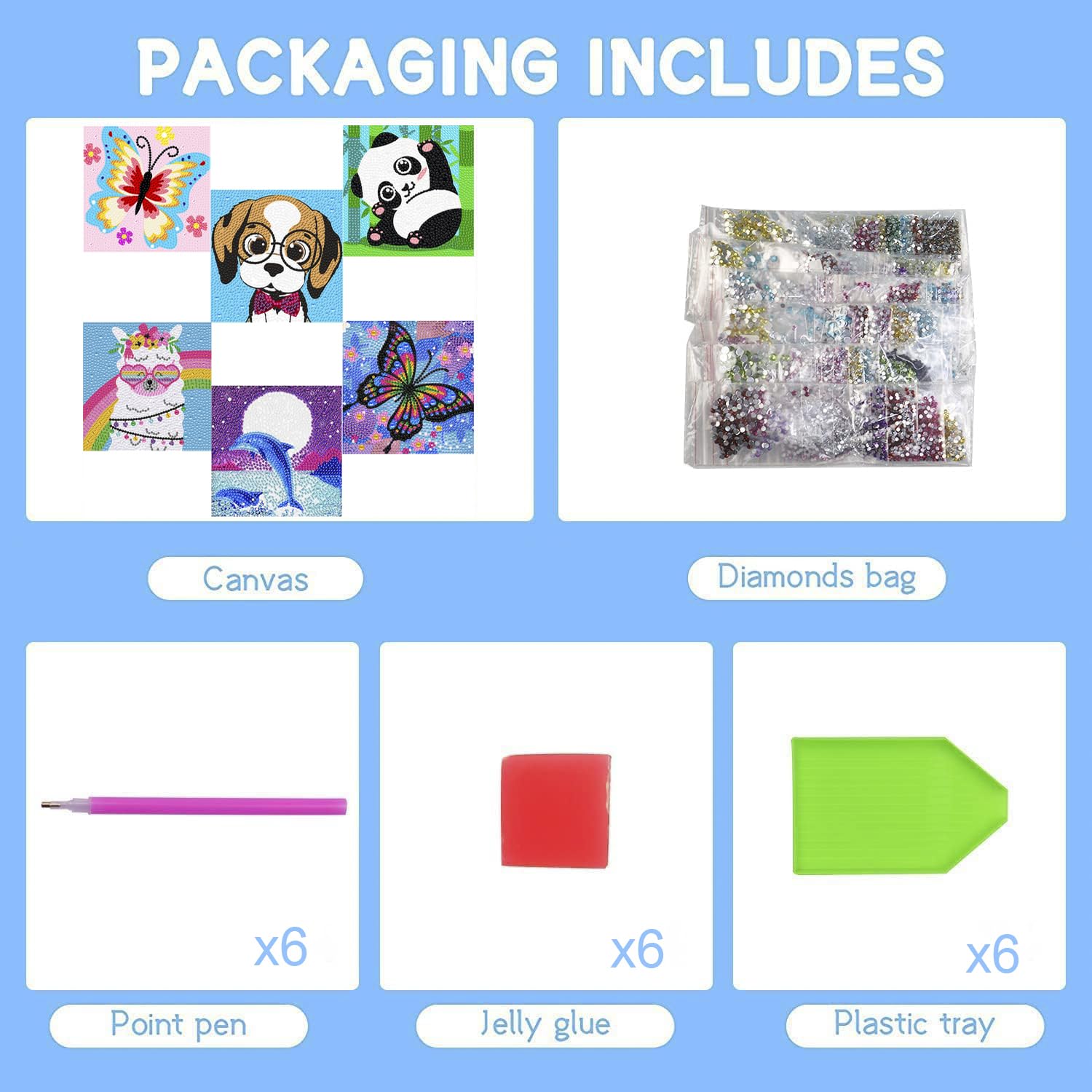- Diamond Art Kits For Kids Package Include : Each kids diamond painting kits comes with everything needed. Include 6*HD painting canvas,6*point pen, 6* tray, 6* clay, enough colorful round diamonds. Besides provided extra 30% beads to ensure the kids diamond art can be completed smoothly. Spend less money get more diamond dots for kids ages 8-12 .(Note: This diamond art kits for kids does not include a frame)