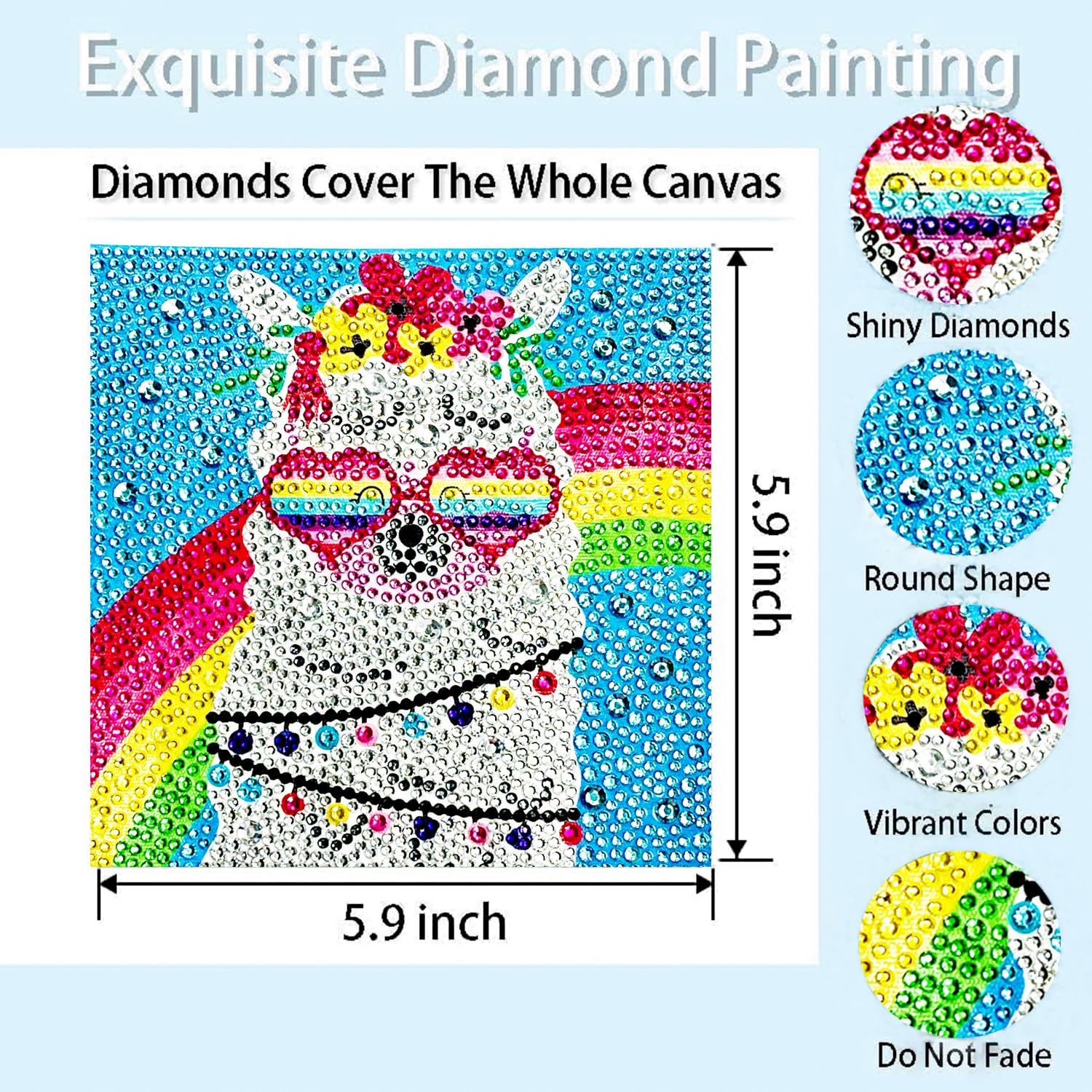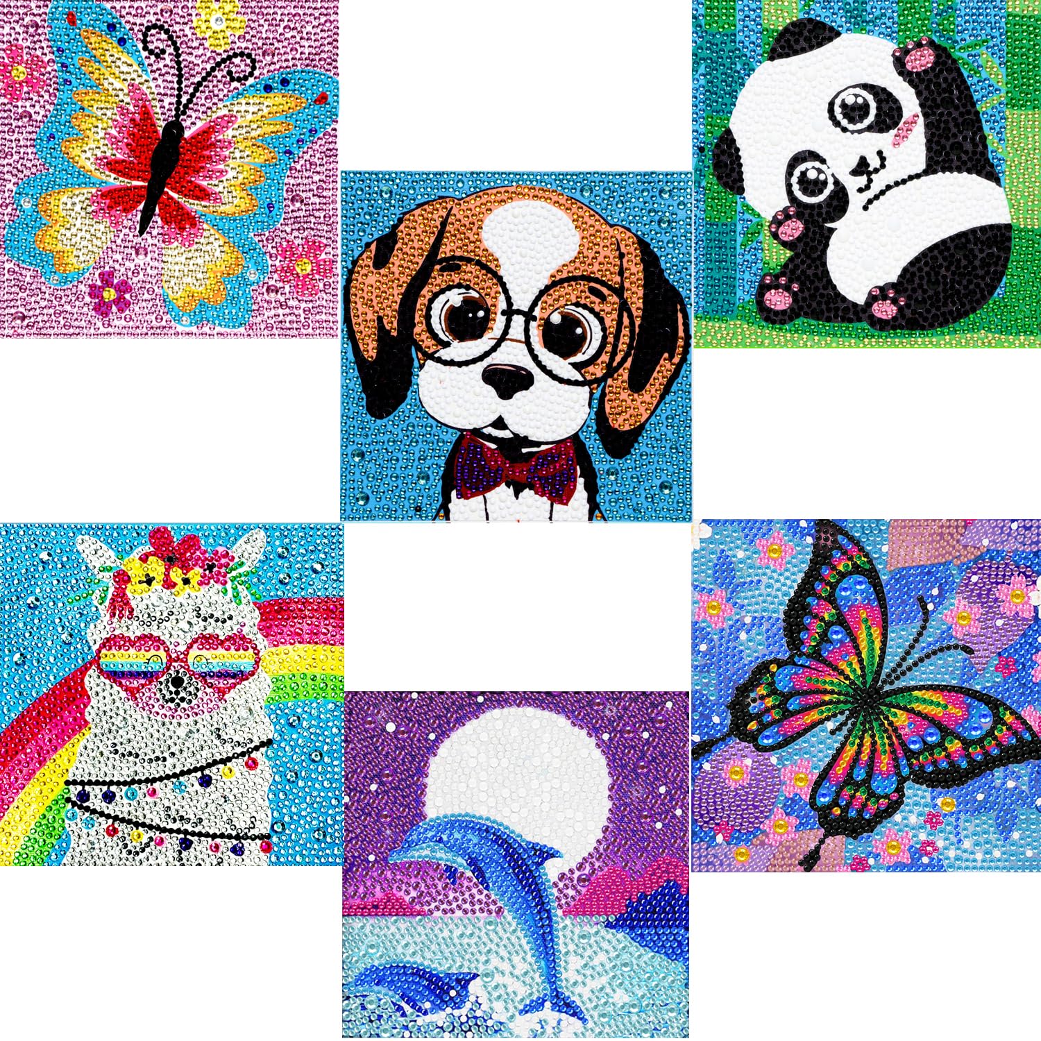 5D Diamond Painting Kits for Kids, Big Gem Diamond Arts Kits for Girls Boys,Alpaca Butterfly Easy Dot Painting Rhinestone Jewel Art,Panda Dog Whale Paint by Stickers for Kids 9-12 ages(6 PACK)
